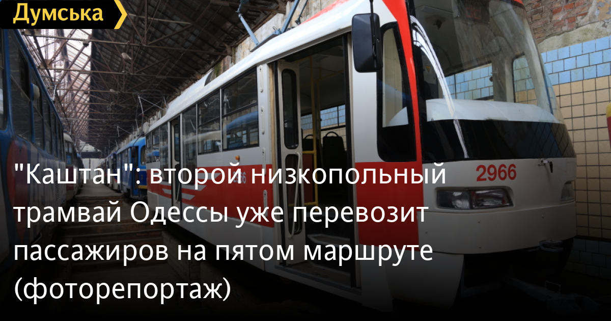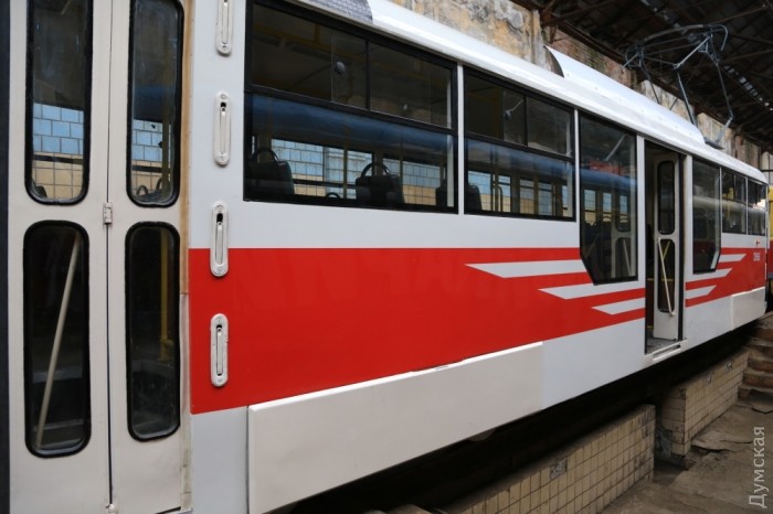 Сегодня новый частично низкопольный трамвай, собранный в ремонтных мастерских ГП «Одесгорэлектротранс», вышел на городские линии. Еще несколько дней трамвай будет проходить испытания с перевозкой пассажиров на 5-м маршруте, а со следующей недели он будет обслуживать маршрут №7.