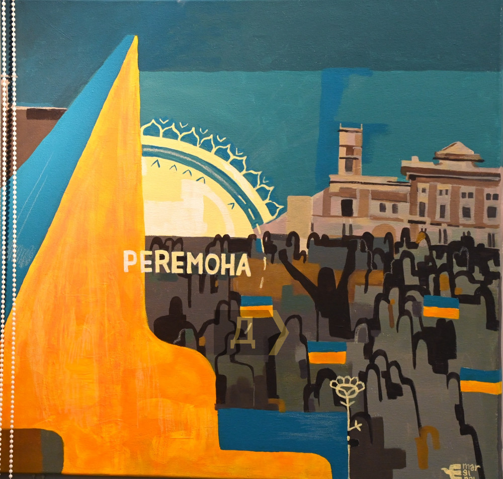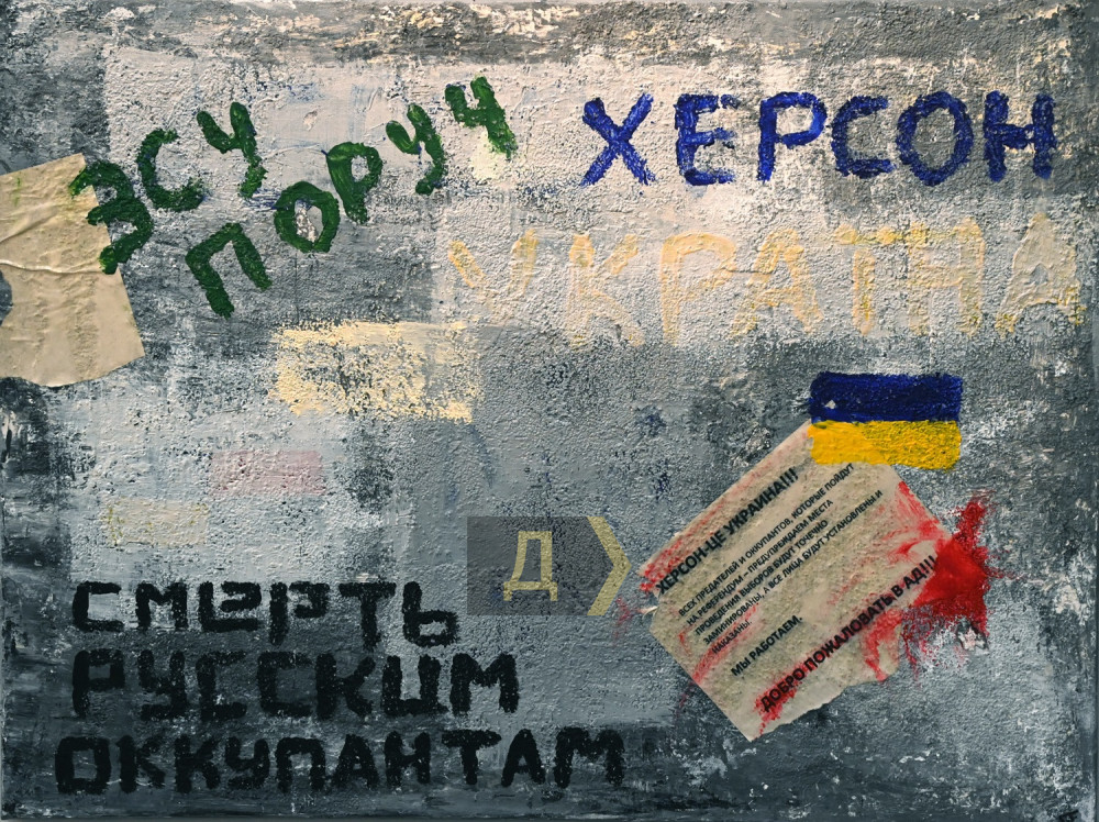 47 українських художників та ілюстраторів узяли участь у підтримці мешканців окупованої Херсонщини, у залі представлено 62 роботи. Тут є мирні пейзажі та войовничі козаки, стиглі кавуни та грізні снаряди, писані красуні та зруйновані будинки — такою є зараз палітра життя.