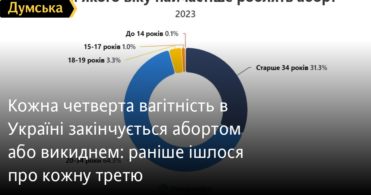 Кожна четверта вагітність в Україні закінчується абортом або викиднем: раніше ішлося про кожну третюНа тисячу новонароджених українців у 2023 році припало 250 абортів і викиднів. Це набагато менше, ніж у 2011, наприклад, коли на ту саму кількість немовлят припало 330 таких операцій, пише «Опендатабот». Загалом за останні 13 років абортів в Україні зменшилося в 3,6 раза — зі 163 тис. до 45 тис. на рік. При цьому з початку великої війни переривань вагітності стало менше на 18%. Близько 90 тис. абортів зробили українки за два роки повномасштабного вторгнення, за даними Центру громадського здоров'я МОЗ. Дві третини від усіх абортів минулого року робили жінки від 20 до 34 років. 1% - дівчата до 17 років. Так, наприклад торік неповнолітні дівчата зробили 464 аборти, з них 29 переривань вагітності припадає на дітей до 14 років. До статистики увійшли як спонтанні переривання вагітності (викидні), так і медичні легальні аборти, що робляться в державних і приватних медичних установах планово за медичними показаннями або бажанням самої жінки. СМЕРТЬ РОСІЙСЬКИМ ОКУПАНТАМ! Помітили помилку? Виділяйте слова з помилкою та натискайте control-enter |