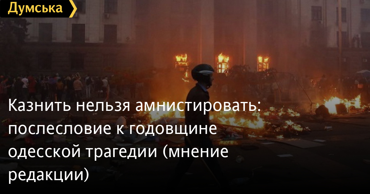 Мы видим только один конструктивный выход — объявить амнистию для рядовых участников событий 2 мая с обеих сторон, которых не подозревают в организации беспорядков и совершении других преступлений.