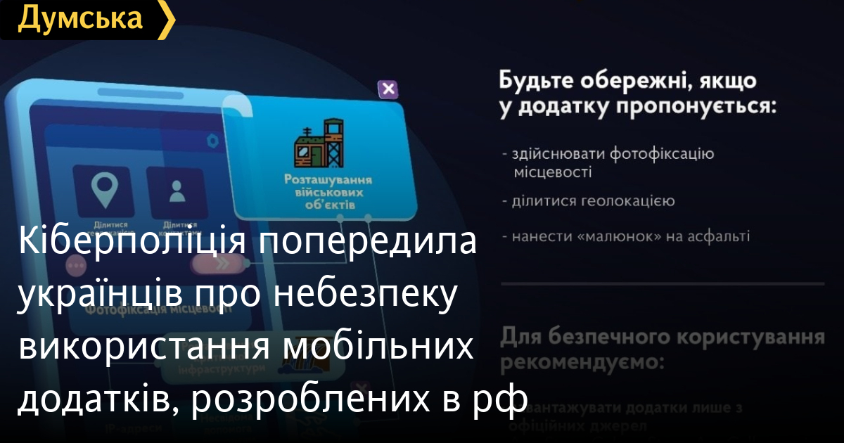 Кіберполіція попередила українців про те, що росія веде розвідку через мобільні додатки і закликала громадян бути обережнішими в інтернеті.