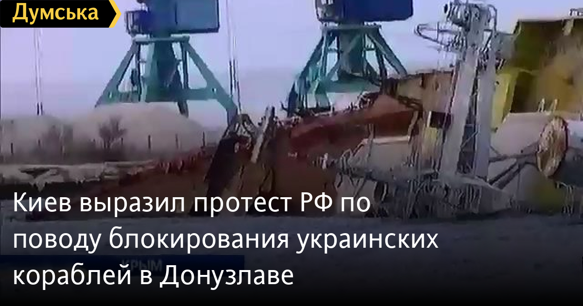 «МИД Украины заявило решительный протест МИД РФ в связи с перекрытием военными формированиями ЧФ РФ судноходных фарватеров на входе в бухту озера Донузлав из-за затопления в ночь с 5 на 6 марта 2014 г. большого противолодочного корабля «Очаков» и спасательного буксирного судна «Шахтер», которые входили в состав ЧФ РФ», — сказал Перебийнис.