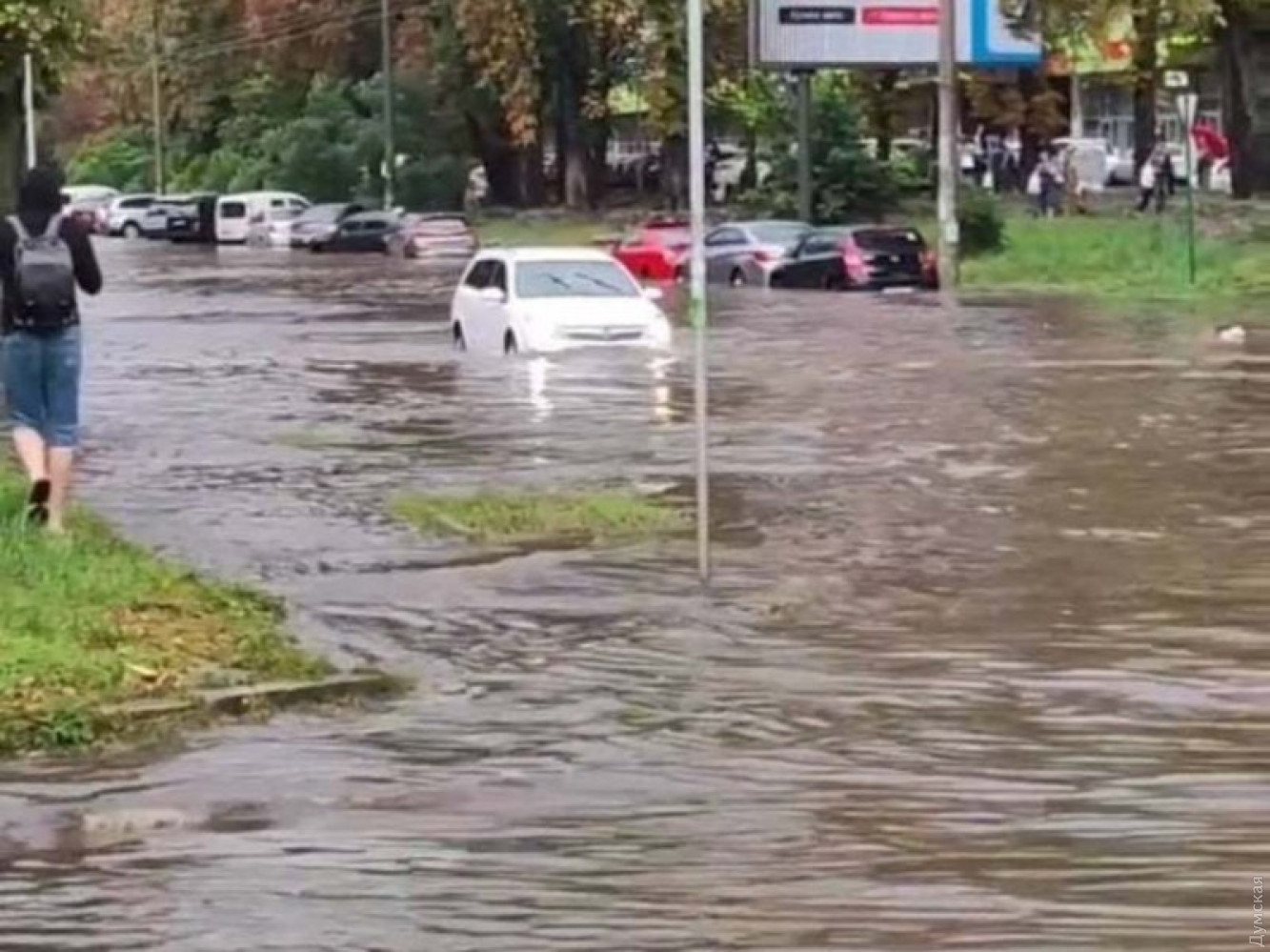 Киев заливает сильный ливень: на улицах образовались гейзеры, станцию метро закрыли, а трамваи ходят с перебоямиВ Киеве ливень, накрывший город 29 августа, топит улицы и начал заливать станции метро, в результате чего одну из них закрыли. Как сообщила пресс-служба метрополитена, речь идет о станции «Героев Днепра». Ее первый вестибюль закрыт на вход и выход во избежание подтоплений. О возобновлении работы уведомят дополнительно. Также в связи с подтоплением было приостановлено движение общественного транспорта на ряде маршрутов. В частности, «Киевпастранс» проинформировал о задержке в движении трамваев №12,16 и 19. Транспорт застрял в районе ул. Кирилловской из-за скопившейся воды. На месте откачивают воду аварийные бригады. Также, по данным местных пабликов, работы хватает коммунальщикам на улице Жилянской. Старые ливневки там не справляются с нагрузкой, из отверстий бьют гейзеры грязной воды. Машины и люди тонут на ул. Олеся Гончара и на Вышгородской. В соцсети выкладывают фото и видео последствий непогоды. Так, на одном из роликов видно, как на площади Победы парень посадил девушку на плечи и несет через огромную лужу. А на проспекте Победы шквальный ветер, которым сопровождается дождь, повалил дерево, оно упало на забор и сломало его. Отметим, что синоптики заранее предупредили о грозе в столице, которая, предположительно, продлится до конца суток. Объявлен І «желтый» уровень опасности. Местным жителям рекомендуется закрывать окна и не хвататься за металлические ручки дверей. Интересно, что некоторые заранее подготовились к наводнению в столице. Так, в сети появились снимки, где люди строят своеобразное «укрепление» из набитых грузом мешков при входе в подземный переход. Таким способом они создали барьер, который помешает воде хлынуть в подземку, как это часто бывает. СМЕРТЬ РОССИЙСКИМ ОККУПАНТАМ! Заметили ошибку? Выделяйте слова с ошибкой и нажимайте control-enter Новости по этой теме: 7 ноября 2025: До +16, но с дождями: в Одессе прогнозируют ухудшение погоды 29 октября 2025: Котельные готовы: Одесса включит отопление через две недели, а начало ноября будет аномально теплым 8 октября 2025: Одесские школы и садики возвращаются к очному режиму работы 6 октября 2025: Из-за ухудшения погоды школы и садики Одесской области переводят на дистанционное обучение 1 октября 2025: Катастрофа, которую можно было предотвратить (блог) |