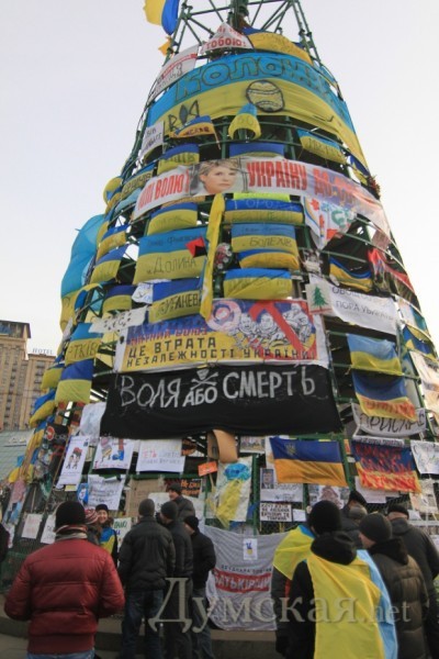 Напомним, проблемы с елкой начались в ночь с пятницы на субботу, когда специалисты из КП «Киевблагоустройство» привезли ее в разобранном виде на занятую протестующими площадь Независимости и под защитой милиции приступили к сборке. Это привело, как известно, к столкновениям между участниками Евромайдана и силовиками, которые потом назвали «кровавым разгоном митинга».