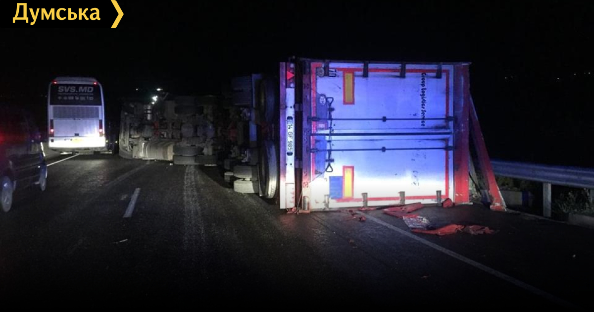 Грузовой автомобиль с прицепом перевернулся вчера вечером на 403 километре автодороги «Одесса — Киев», возле Знаменки Ивановского района. Как сообщили в патрульной полиции, инцидент случился в 22:15. Водитель фуры не справился с управлением, и машина опрокинулась на правый бок. Пострадавших нет. В результате ДТП заблокировано движение по одной полосе. Как передает корреспондент «Думской», грузовик лежит на дороге до сих пор. СМЕРТЬ РОСІЙСЬКИМ ОКУПАНТАМ! Помітили помилку? Виділяйте слова з помилкою та натискайте control-enter Новини по цій темі: 30 серпня 2025: Машина вилетіла в кювет: мер Рені потрапив в аварію, його мати загинула, а маленький син у лікарні (фото) 18 серпня 2025: Троє загинули, один у лікарні: на трасі Одеса-Рені водій Mercedes не пропустив фуру (фото) 12 серпня 2025: Як у кіно: в Одесі затримали драгдилера з партією психотропів на 20 мільйонів (фото) 4 серпня 2025: Експертизу не зробили, камери не подивилися: одеські волонтери скаржаться на саботаж поліції у розслідуванні вбивства собаки |