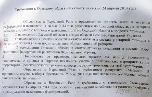 Как передает корреспондент «Думской», в акции против «хунты» и за «федерализацию» приняло участие не более трех десятков человек.