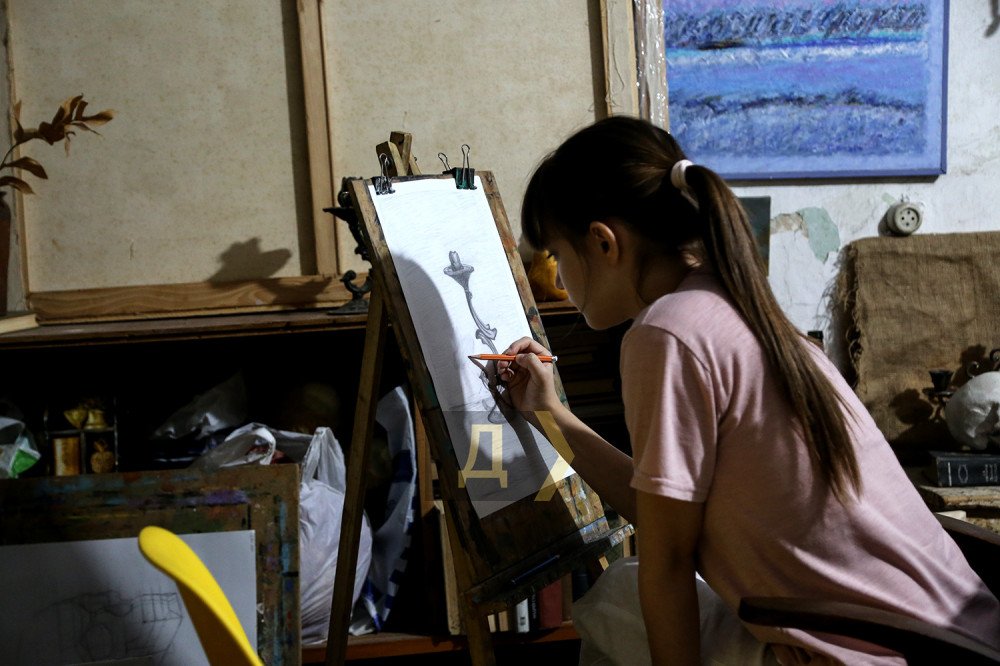 Студія відновила свою роботу теж з середини березня – двічі на тиждень, вечорами дівчатка та хлопчики, а також дорослі люди навчаються малюнку та живопису. Зараз немає фіксованої оплати – поклади у банку, скільки зможеш – тому що війна.