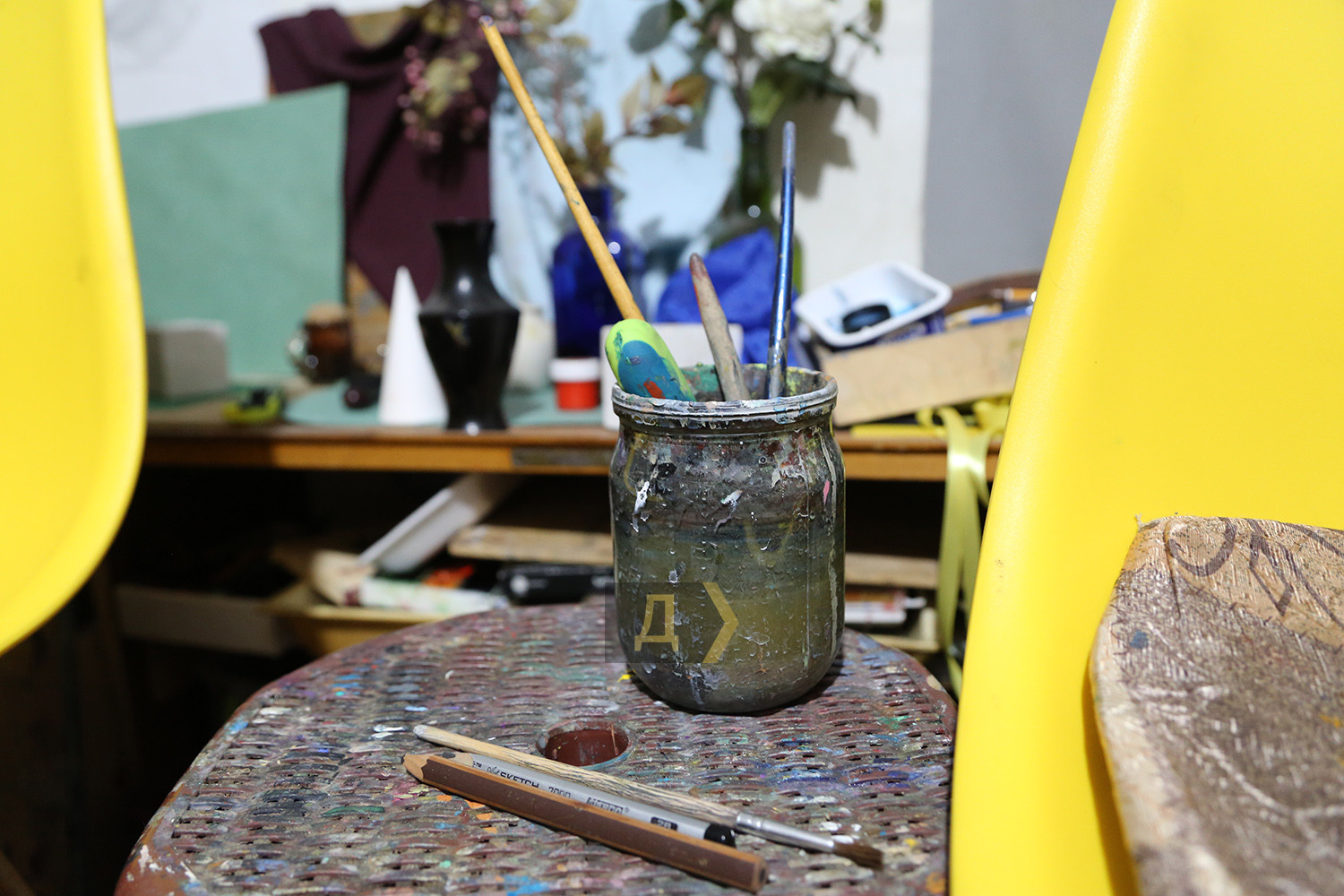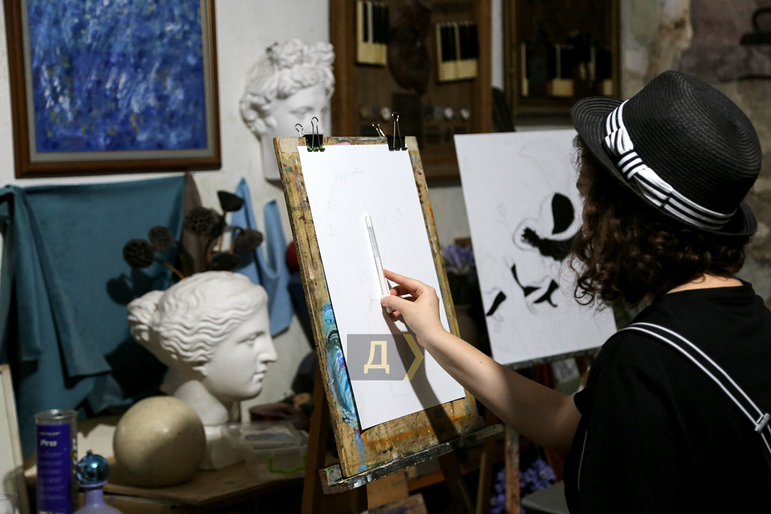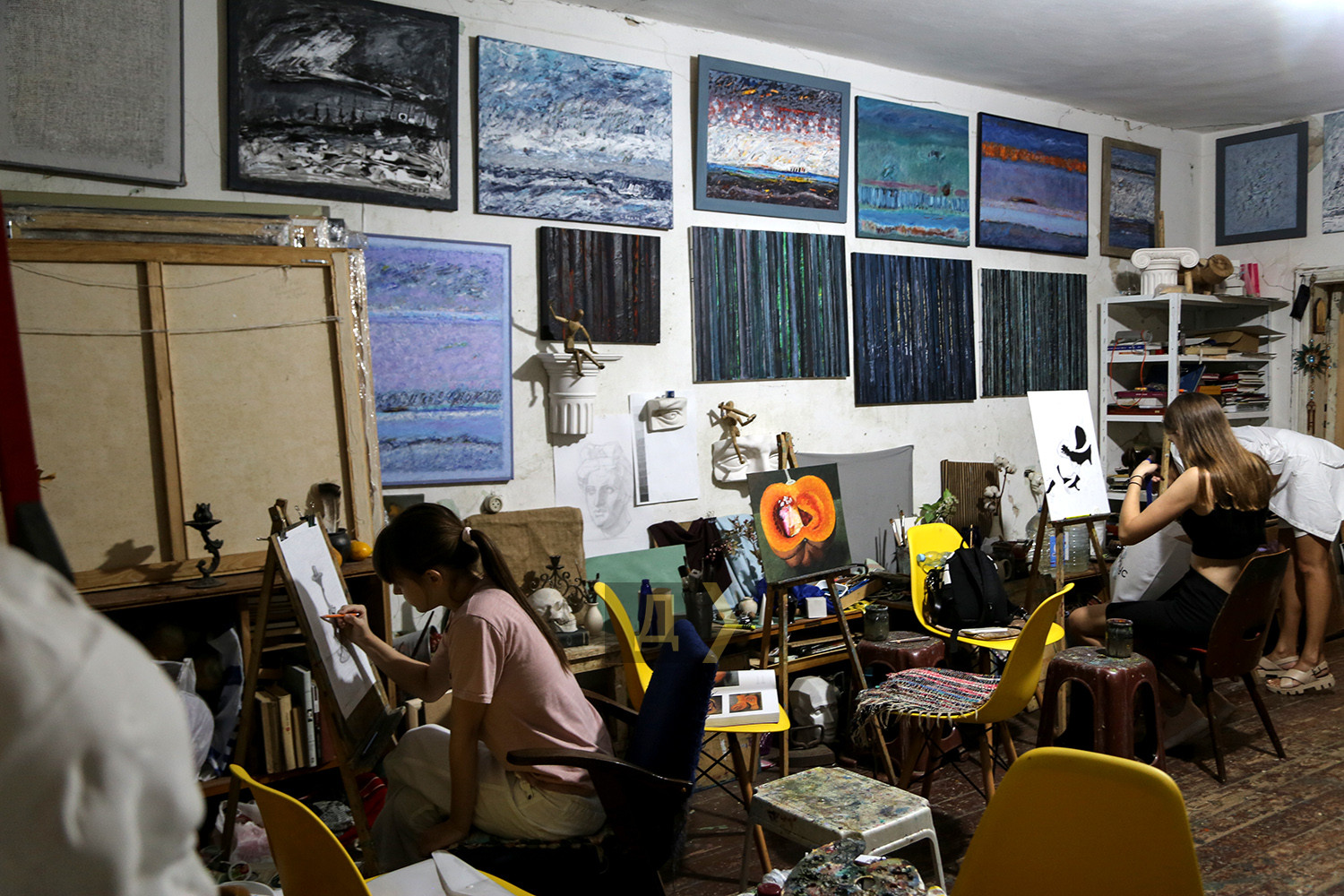 Пензликом та олією проти путіна: як в Одесі вчаться малювати і ховаються під час повітряних тривогМаленькі майстерні у напівпідвалі у самому центрі Одеси. Колись їх роздавали від Спілки художників, зараз усе тримається на чесному слові та за старою пам'яттю. Саме тут побувала кореспондент «Думської», щоби переконатися, що навіть під час війни творче життя у місті триває, незважаючи на повітряні тривоги. Тут знаходиться майстерня одразу двох одеських художників Ігоря Божка та його сина Сергія. Обидва — відомі автори, у кожного є свої шанувальники та шанувальниці. Ігор пережив Другу світову війну дитиною та добре її пам'ятає. Закінчив нашу Греківку ще в середині 1960-х, і вже тоді писав нонконформістські роботи та приймав активну участь у неформальних рухах. Пише вірші та талановиті картини, робить колажі та інсталяції. Частина робіт Ігоря Божка перебувають у його майстерні – вони надихають тих, хто приходить. Сергій – його син та учень. Після початку повномасштабного вторгнення повернувся до творчості в середині березня. «Пройшов перший шок і я зрозумів, що не можу не малювати — треба було висловитися хоч пензликом по полотну», — сміється Сергій. Одна з робіт молодого художника «Зацвіли вишні» — на полотні справді цвітуть дерева, але в об'єктив відеокамери безпілотника видно не лише їх, а зруйноване місто — розбиті будинки та знищена техніка ворога з літерами z та v. «Це була рефлексія на новини, на те, що відбувалося навколо. Перше усвідомлення — якого біса вони сунулися до нас, на нашу землю і полізли все руйнувати, красти та ґвалтувати», — розповідає Божко-молодший. А потім був один із прильотів до Одеси, і від ударної хвилі в картину «Дотримуйтесь спокою. Працює ППО» потрапили пензлики, пробили полотно і так там і залишилися. «Я написав про цей випадок на Фейсбуці і виклав фото. Спочатку хотів витягнути і залишити роботу з дірками — як символ війни. Мовляв, і картини зазнають поранень. Але потім вирішив, що нехай буде так, як трапилося, — ділиться художник. — А потім цю картину і купили. Соцмережі — найкращий маркетолог, зараз художникам не дуже солодко доводиться, адже потрібніше купувати дрони та тепловізори для наших захисників, а не живопис та графіку». На полотні «Перші підхерсоновики» — троє російських нацистів у окопі зі вкраденим холодильником та недоїденими кавунами. Цю картину Сергій закінчив незадовго до початку контрнаступу на півдні України. Автор поєднує майстерність живописця з тонкою іронією — це він прищеплює і своїм учням. «Взагалі-то школа-студія «Штрих» у нас працює ще з 2008 року, — розповідає Божко-молодший. — Ми одні з перших почали приймати учнів. Вчимо як академічному живопису, так і вільної творчості. Немає жодних догм, є бажання бачити і втілювати прекрасне — приходь і навчайся. Я взагалі проти догм, хоча й академізм у нас виходить непогано — після наших курсів усі вступали до вузів та до Греківки, жодних нещасних випадків не було. Усі задоволені та займаються творчістю». Студія відновила свою роботу теж з середини березня – двічі на тиждень, вечорами дівчатка та хлопчики, а також дорослі люди навчаються малюнку та живопису. Зараз немає фіксованої оплати – поклади у банку, скільки зможеш – тому що війна. «До мене прийшла родина з окупованого селища під Донецьком. Я говорю — я з вас грошей не візьму. 