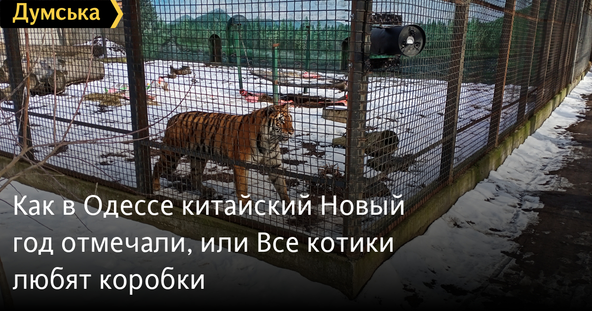 «Это не тигр, а тигрица!» — кричит в толпе кто-то наблюдательный. Все верно — это наша одесская амурская тигрица Тайге. Большой кошечке — большую коробочку. С Новым годом!