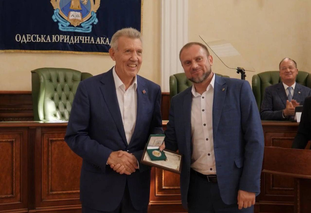 Голова Одеського територіального управління НАБУ Володимир Деулін отримав нагороду з нагоди Дня юриста (8 жовтня) з рук президента Одеської юридичної академії Сергія Ківалова.