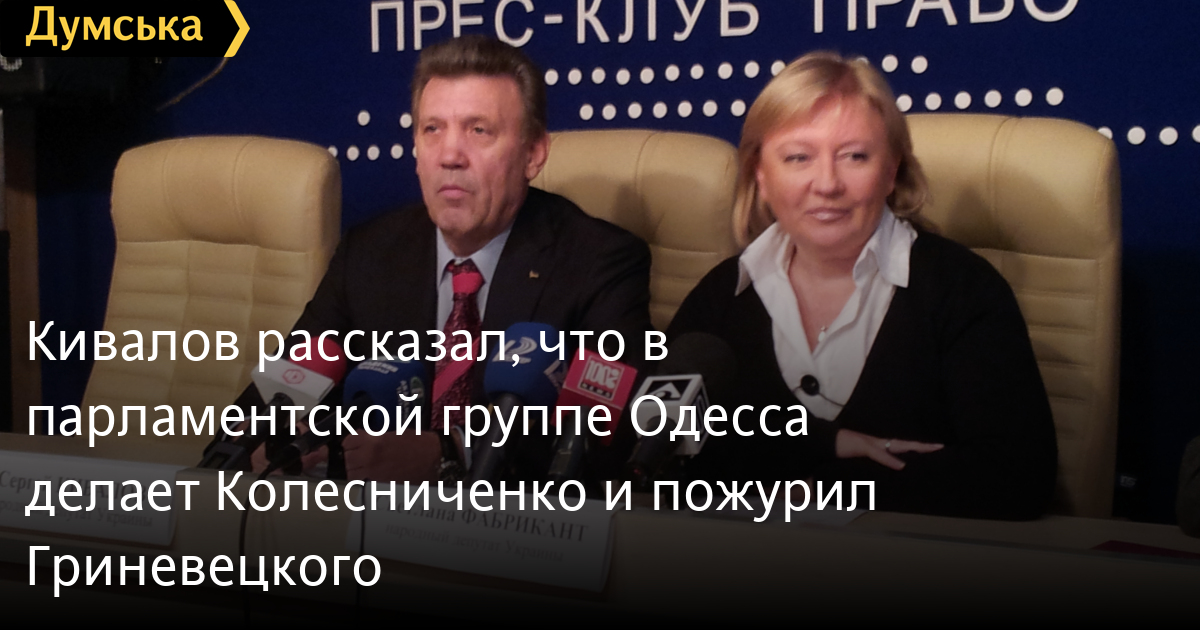 Он также подчеркнул, что Гриневецкий вышел из группы 11 января, и в этот же день в группу вошел депутат Давид Жвания. Вместе с тем, желание состоять в объединении «Одесса» изъявил регионал Вадим Колесниченко.