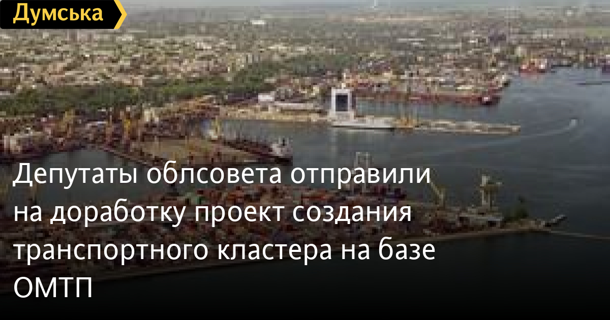 В ходе сегодняшнего заседания сессии Одесского областного совета депутаты отправили на доработку проект решения о создании транспортного кластера на базе Одесского морского торгового порта, автором которого является заместитель председателя облсовета Алексей Гончаренко. Проект был разработан во исполнение решения областного совета от 18 февраля 2011 г. № 88-VI «О внедрении кластерной модели развития инфраструктуры Одесской области».