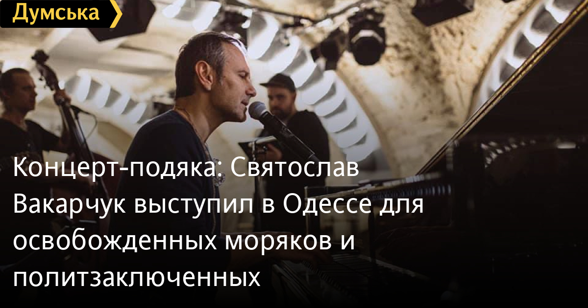 Лидер группы «Океан Эльзы» Святослав Вакарчук выступил в Одессе вечером 26 октября. На закрытом концерте в Urban music hall присутствовали около двухсот человек, среди которых освобожденные из кремлевской тюрьмы украинский режиссер Олег Сенцов, военнопленные моряки, а также их родственники и волонтеры.