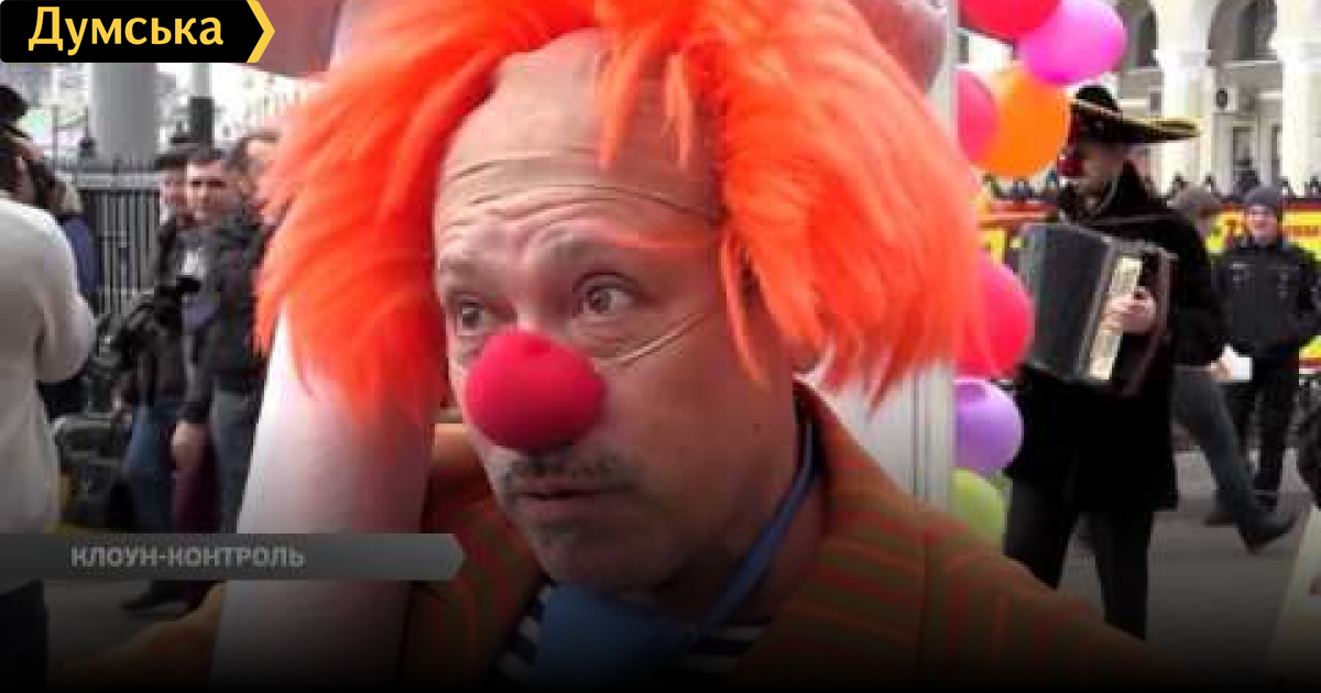 Клоун-контроль на железнодорожном вокзале. В преддверии празднования Дня смеха, клоуны поднимали градус настроения приезжающих в Одессу людей. Александр Тарасенко окунулся в атмосферу грядущего праздника СМЕРТЬ РОСІЙСЬКИМ ОКУПАНТАМ! Помітили помилку? Виділяйте слова з помилкою та натискайте control-enter Думская ТВ. Сюжеты: