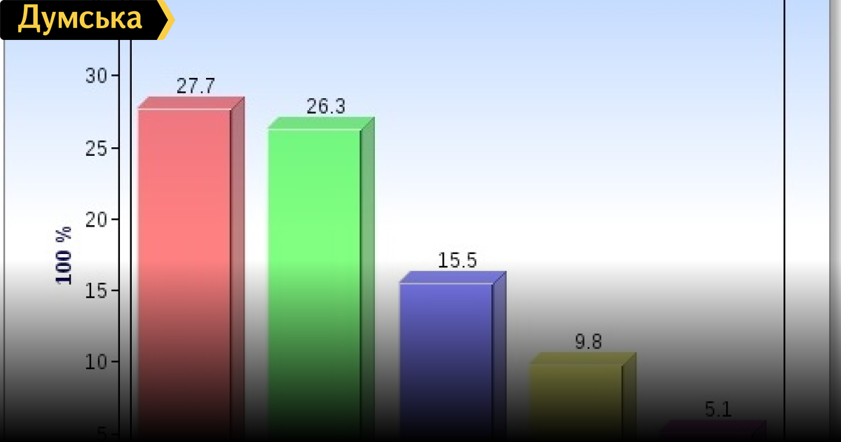 Партия регионов получила бы 27,7%, Всеукраинское объединение «Батькивщина» — 26,3%, партия «УДАР» Виталия Кличко — 15,5%, Коммунистическая партия — 9,8% и Всеукраинское объединение «Свобода» — 5,1%.