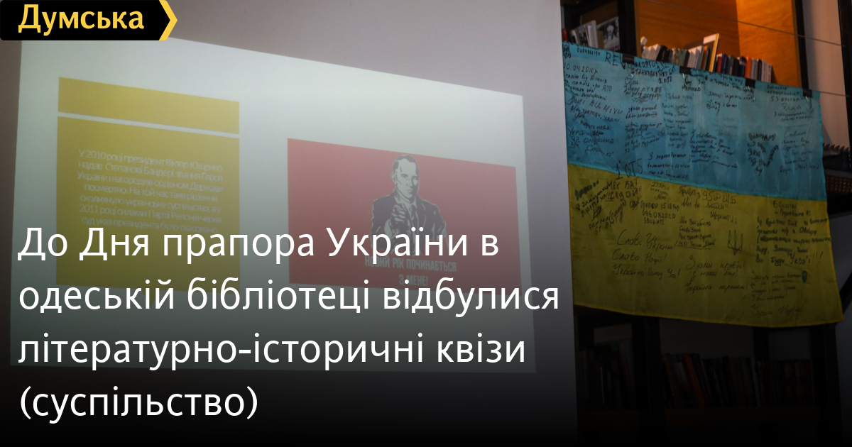 Цікаво і з користю провели сьогоднішній день відвідувачі бібліотеки імені Грушевського — до Дня державного прапора тут пройшли змагання для знавців української історії та літератури в популярному зараз форматі квіз. Інтелектуально-розважальний захід організували волонтери Гончаренко центру Одеса та співробітники бібліотеки. «Заходи, які нагадують, наскільки цікава історія в нашої країни, наскільки багата її культура, необхідні для людей різного віку і всіх професій, — впевнена керівник Гончаренко центру Сабіна Нікітенко. — Ми організовуємо подібні заходи до всіх державних свят і люди із задоволенням беруть участь у них». На відміну від звичайної вікторини, питання святкового квізу були подані в розважальній формі, а самі історичні факти були підібрані так, щоб здивувати учасників. «Ми дуже вдячні Гончаренко центру за те, що вони долучилися до цього заходу, — зазначила Ольга Нагорнюк, завідувачка відділення соціокультурної діяльності бібліотеки. — Вікторина не потребує якихось спеціальних історичних знань. Укладач Ксенія Сорокіна навмисно вирішила не вставляти складні запитання: де і коли відбулася якась битва чи народилася та чи інша відома особистість. Літературний квіз нам передали організатори Вишиванкового фестивалю, який до повномасштабного вторгнення щорічно проходив на Приморському бульварі». Учасник і переможці отримали пам'ятні сувеніри та призи. СМЕРТЬ РОСІЙСЬКИМ ОКУПАНТАМ! Помітили помилку? Виділяйте слова з помилкою та натискайте control-enter |