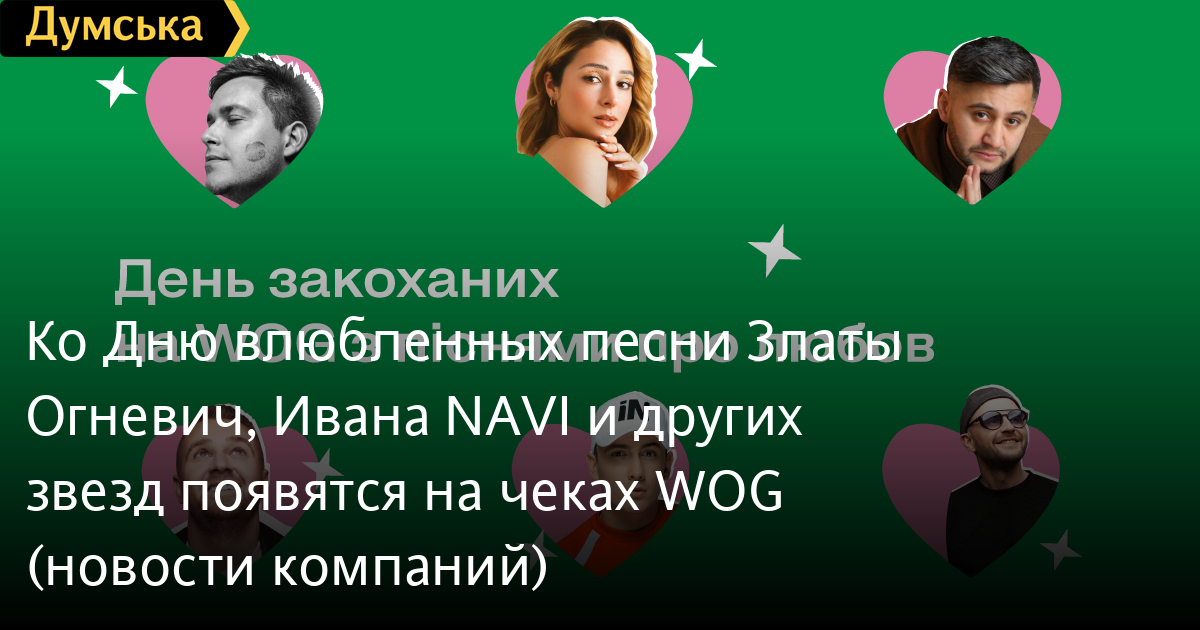Сеть АЗК WOG подготовила ко Дню влюбленных романтические чеки, которые «зазвучат» строками о любви из песен украинских артистов музыкального издательства «BEST MUSIC».