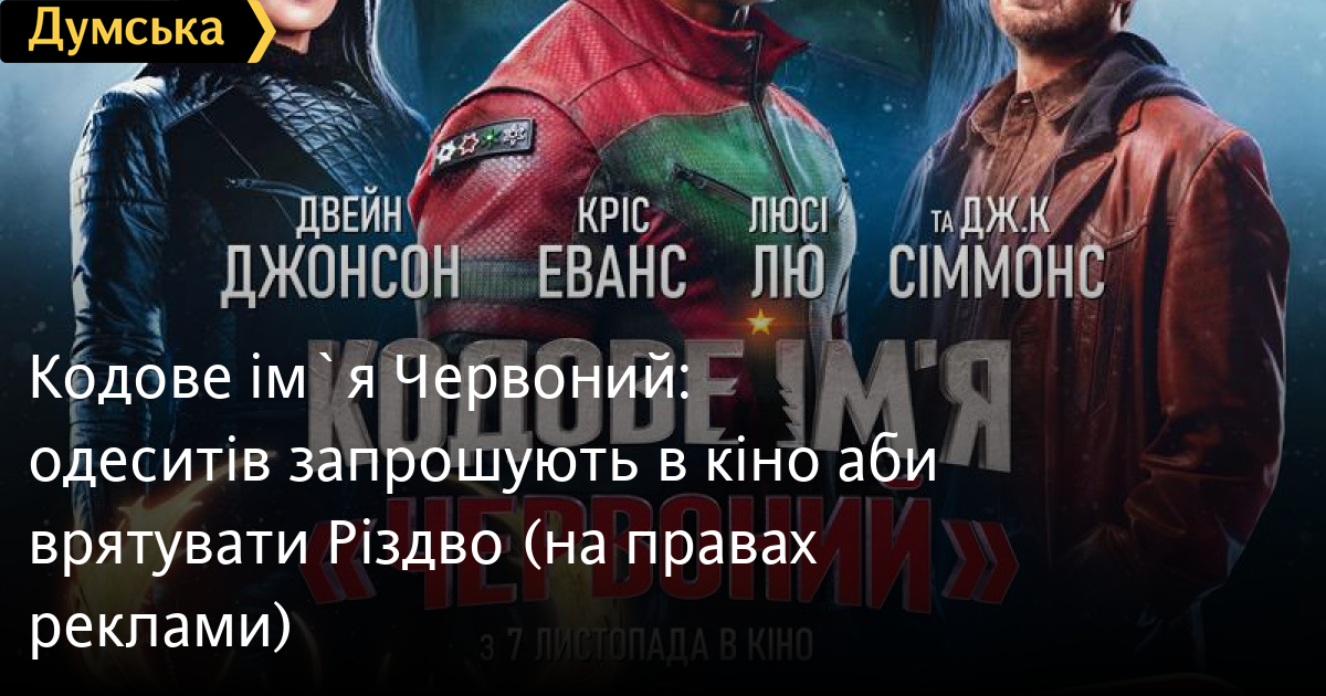 Кодове ім`я «Червоний»: одеситів запрошують в кіно аби врятувати Різдво (на правах реклами)Різдвяну стрічку «Кодове ім'я «Червоний» про викрадення та порятунок Санта Клауса покажуть в одеському «Сінема парку». Аби повернути Санту, начальник служби безпеки Північного полюса мусить об'єднатися з найвідомішим у світі мисливцем за головами. Разом вони розпочинають буремну кругосвітню місію, щоб врятувати Різдво. Головні ролі у фільмі зіграють Двейн Скеля Джонсон, Кріс Еванс, Кірнан Шипка та Дж. К. Сіммонс. Подивитися розклад та купити квитки можна тут. СМЕРТЬ РОСІЙСЬКИМ ОКУПАНТАМ! Помітили помилку? Виділяйте слова з помилкою та натискайте control-enter |