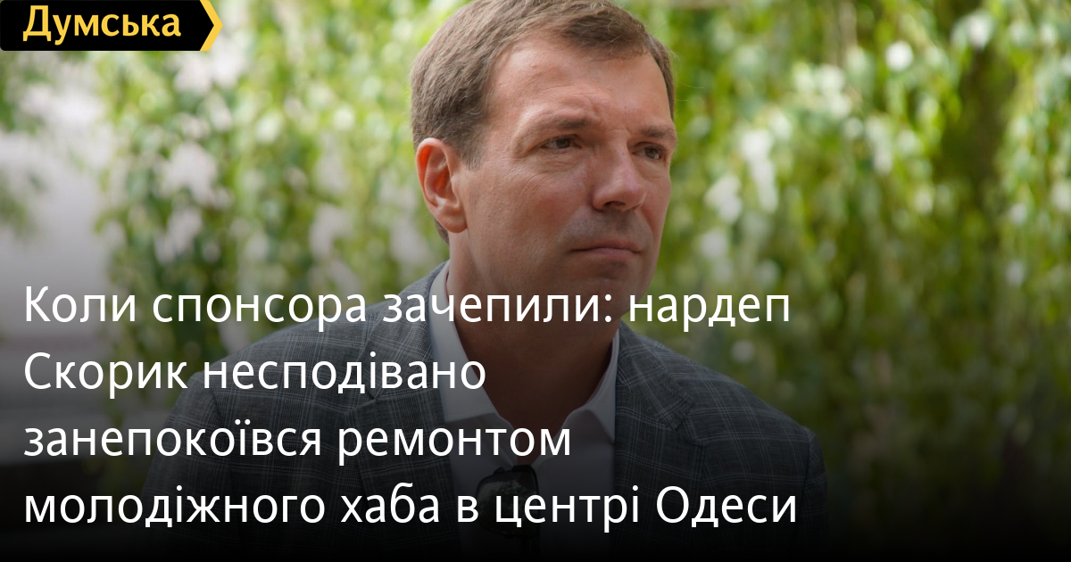 Коли спонсора зачепили: нардеп Скорик несподівано занепокоївся ремонтом молодіжного хаба в центрі Одеси