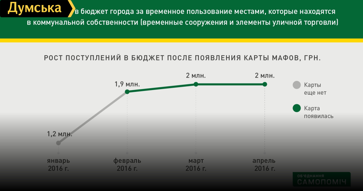 Количество легальных МАФов увеличилось: на них город может зарабатывать 2 миллиона гривен в месяцВ Одессе прошла презентация результатов первых четырех месяцев работы интерактивной карты МАФов. Как отмечают авторы проекта — депутаты Одесского городского совета (ВО «Самопоміч») Вадим Терещук и Александр Борняков, карта сыграла свою роль: после внедрения новшества количество легальных МАФов в городе увеличилось. Теперь разрешительные документы есть у 3000 временных торговых сооружений, а еще в январе 2016 года их было 2007. «Мы провели полную инвентаризацию МАФов и вывели в прозрачное и законное поле их значительную часть. Таким образом мы увидели, что город может зарабатывать до 2 миллионов гривен в месяц. И это не предел», – говорит автор карты МАФов Александр Борняков. Так, на 80% увеличились и ежемесячные поступления в городской бюджет за временное пользование местами, которые находятся в коммунальной собственности. На сегодняшний день они составляют 1,8 миллионов гривен в месяц, что почти в 2 раза больше, чем в прошлом году и в три - чем в позапрошлом. (В 2014 году месячный показатель составлял 550 тысяч грн/мес; а в 2015 году – 1 млн. грн/мес). Тем не менее, в городе остается много неоформленных объектов, с которыми авторам проекта только предстоит разобраться. Как отметил Александр Борняков, 73 объекта холодильного оборудования возле одесских МАФов стоят незаконно, принося тем самым убыток городскому бюджету в 200 тысяч гривен ежегодно. «Мы не против того, чтобы одесские предприниматели зарабатывали. Но они должны делать это законно», — считает депутат. Отметим, за 4 месяца существования карты в Одессе было демонтировано 356 незаконных временных объектов торговли, что превышает соответствующие показатели 2015 и 2014 годов (276 и 255 демонтированных торговых объектов соответственно). СМЕРТЬ РОСІЙСЬКИМ ОКУПАНТАМ! Помітили помилку? Виділяйте слова з помилкою та натискайте control-enter |