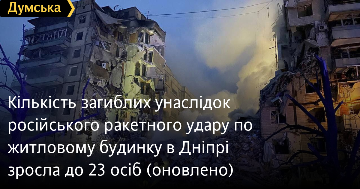 ОНОВЛЕНО О 14:08. За даними Дніпровської міської ради, вже відомо про 23 загиблих.