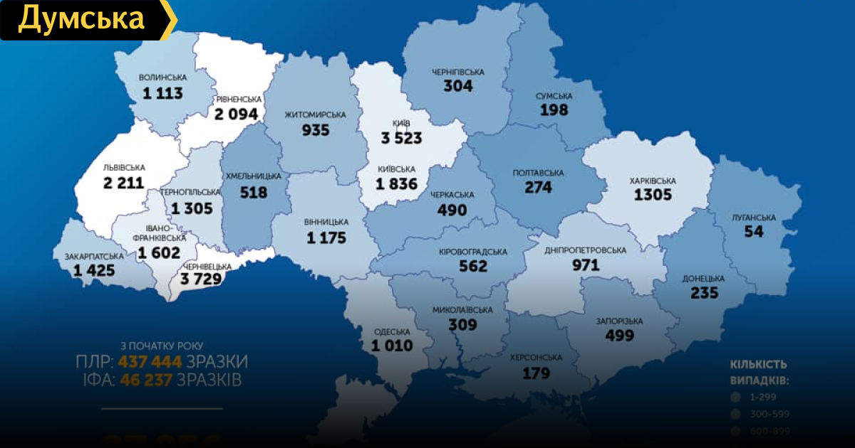 Количество зараженных коронавирусом в Украине снижается: за сутки 394 новых случаяПо состоянию на утро 9 июня в Украине лабораторно подтверждено 27 856 случаев заражения коронавирусной инфекцией. Об этом сообщила пресс-служба Центра общественного здоровья МОЗ. За минувшие сутки в стране зарегистрировано 394 новых случая заболевания. Всего на сегодняшний день в Украине от COVID-19 умерли 810 пациентов, а выздоровели 12 412 человек. Заболеваемость по областям: Винницкая – 1175 Волынская – 1113 Днепропетровская – 971 Донецкая – 235 Житомирская – 935 Закарпатская – 1425 Запорожская – 499 Ивано-Франковская – 1602 Кировоградская – 562 Киевская – 1836 Львовская – 2211 Луганская – 54 Николаевская – 309 Одесская – 1010 Полтавская – 274 Ровненская – 2094 Сумская 198 Тернопольская – 1305 Харьковская – 1305 Херсонская – 179 Хмельницкая – 518 Черновицкая – 3729 Черкасская – 490 Черниговская – 304 Киев — 3523 СМЕРТЬ РОСІЙСЬКИМ ОКУПАНТАМ! Помітили помилку? Виділяйте слова з помилкою та натискайте control-enter Новини по цій темі: 4 березня 2023: "Вакцини-довгожителі", або Як щеплення проти COVID-19 перетворилися в Україні на небезпечний ритуал 27 січня 2023: МОЗ зобов`язали опублікувати договори на закупівлю вакцин проти COVID-19: апеляційний суд задовольнив позов журналіста "Думської" 11 січня 2023: За тиждень в Одесі зафіксовано 159 випадків ковіду 4 січня 2023: За тиждень в Одесі зареєстровано 113 випадків ковіду |