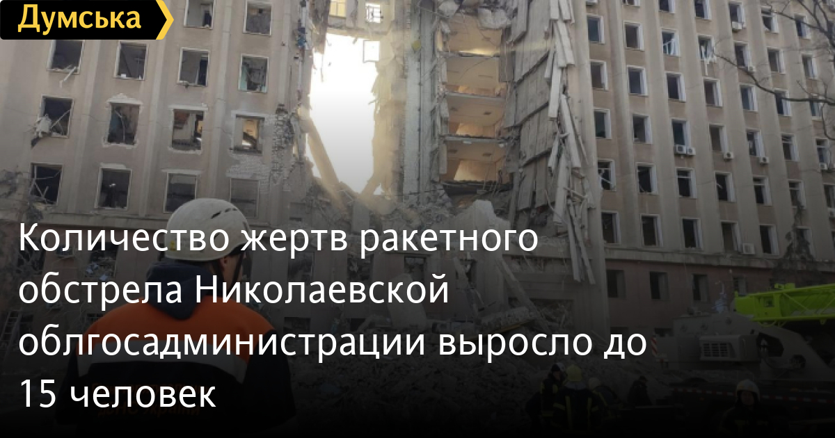 Количество жертв вчерашнего обстрела Николаевской областной госадминистрации выросло до 15 человек.