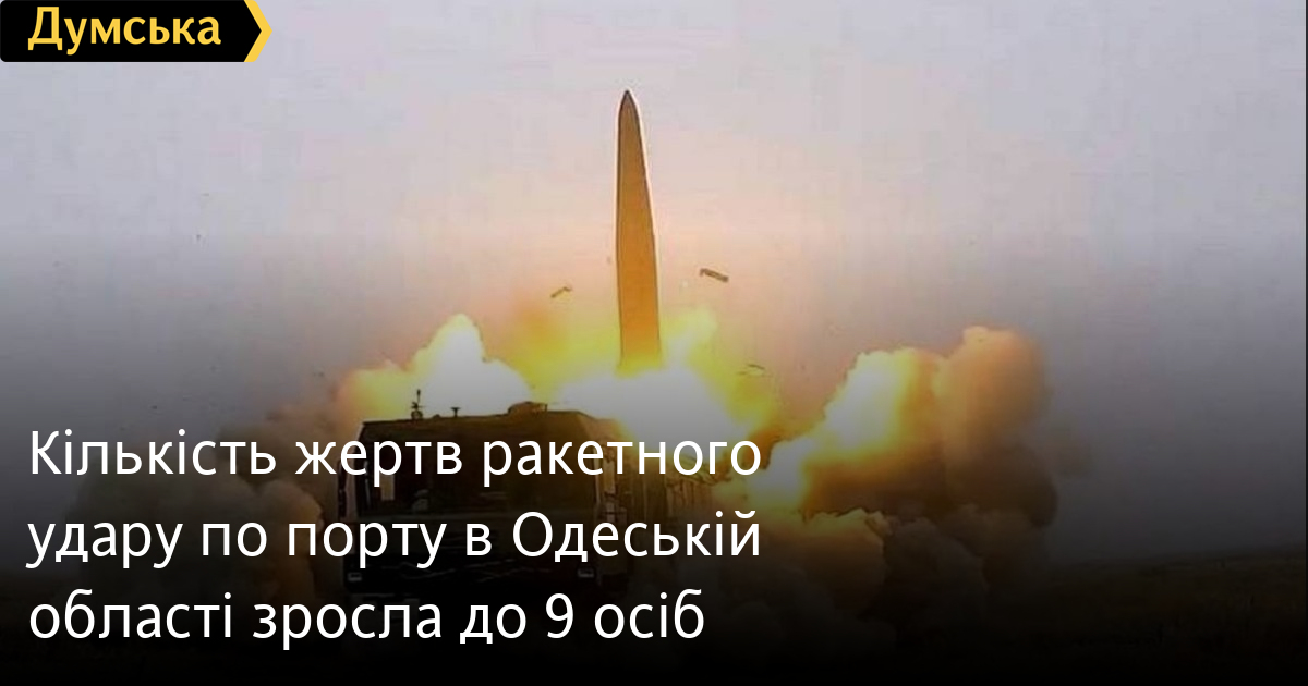 Кількість жертв ракетного удару по порту в Одеській області зросла до 9 осібДо 9 осіб зросла кількість загиблих внаслідок ракетного удару, 9 жовтня, по порту в Одеській області. Про це повідомив голова військової адміністрації Олег Кіпер. За його словами, вранці у лікарні помер 48-річний чоловік. «За два дні російські терористи вбили 13 цивільних людей на Одещині, більшість з яких — молодь», — повідомляє Кіпер. СМЕРТЬ РОСІЙСЬКИМ ОКУПАНТАМ! Помітили помилку? Виділяйте слова з помилкою та натискайте control-enter |