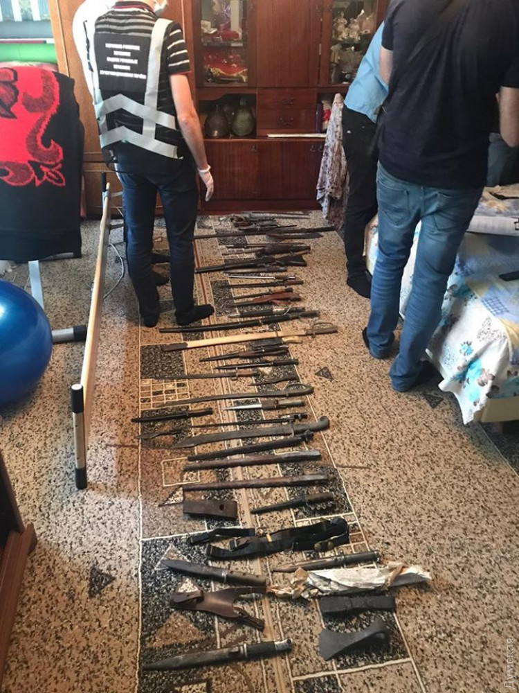 Как сообщили в Белгород-Днестровском погранотряде, у него нашли четыре коллекционных сувенирных кремниевых пистолета, пять огнестрельных «стволов», револьвер под патрон Флобера, один сигнальный «Наган», патроны, а также около 50 различных образцов холодного оружия – ножи, кортики и сабли.