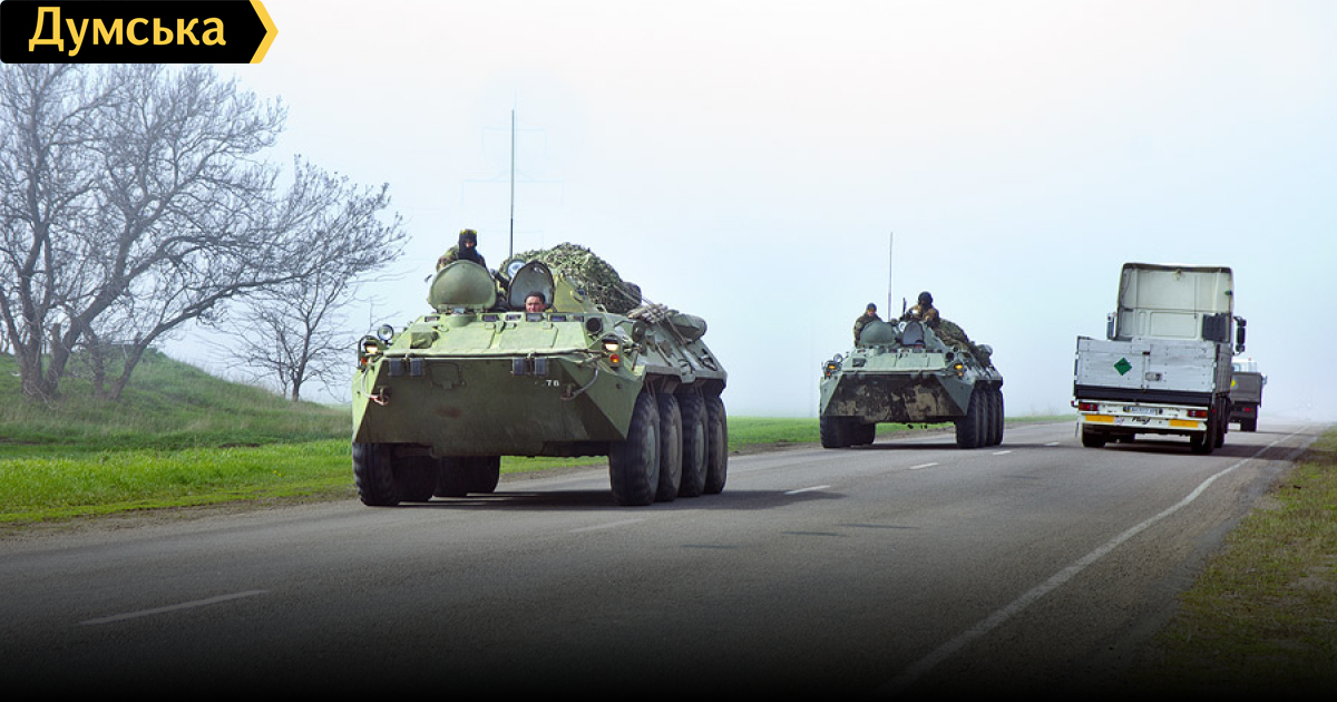 Одну из военных колонн — бронетранспортеры и грузовики — наш корреспондент встретил на границе Донецкой и Запорожской областей.
