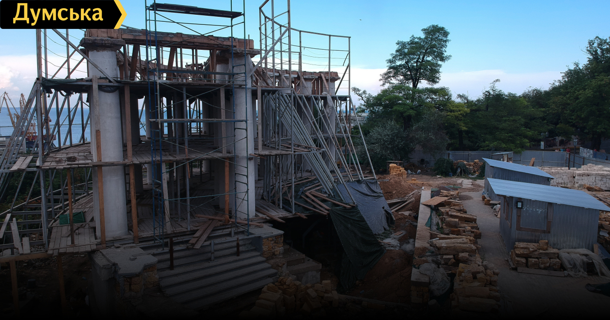Реставрация, реконструкция или вовсе новодел? Недавние бетонные работы на Воронцовской колоннаде вызвали большой резонанс. Защитники культурного наследия утверждают: решив заменить деревянные балки антаблемента бельведера бетонной конструкцией, подрядчик реставрации совершил преступление! Мало того, что памятник архитектуры национального значения после этого стал чуть ли не наполовину новым сооружением, так еще и создана угроза известняковым колоннам, которые могут не выдержать веса бетона. Корреспондент «Думской» разбиралась в ситуации. Работы на бельведере начались весной прошлого года. Тогда колоннада была в откровенно аварийном состоянии. За первые несколько месяцев реставрации полностью разобрали верхнюю часть конструкции, обнажили колонны, а в основании нашли неизвестные ранее помещения. Кроме того, оказалось, что раньше бельведер был немного выше и в сторону дворца спускался широкими ступенями амфитеатра. Вокруг объекта находили самые разные артефакты, в том числе и фрагменты античных амфор. Тогда реставраторы уверяли, что сделают колоннаду такой, какой она была при Воронцове. И амфитеатр, мол, раскопают, и даже цвет сооружению вернут самый что ни на есть аутентичный. На осенне-зимний период и колоннаду, и дворец законсервировали. Пришла весна, а работы никак не начинались. По словам тогдашнего начальника городского управления по вопросам охраны объектов культурного наследия Андрея Шелюгина, необходимо было провести тендер. Дополнительный, потому как из-за обнаруженного под колоннадой реставрация подорожала. Первые разговоры о том, что при работах могут использовать бетон, пошли полтора месяца назад. Именно тогда на верхней части сооружения, именуемой антаблементом, появилась опалубка. Прошел еще месяц, и в нее таки залили бетон. Причем сделано это было ночью. Как утверждают в компании-подрядчике «Одесакомунекологія», они просто не хотели пускать тяжелую технику по Приморскому бульвару днем. А вот гражданские активисты уверены: строители боялись огласки. Примечательно то, что представитель подрядчика Максим Игнатьев, который после ночной заливки рассказывал о законности и острой необходимости использовать именно бетон, еще полтора месяца назад был совершенно иного мнения: «Все восстановим в тех же геометрических размерах и из тех же материалов, которые применялись при строительстве этой колоннады», — заявлял он. Того же мнения придерживался весной и осуществляющий авторский надзор за реставрацией Владимир Суханов: «Мы в самом начале предполагали, учитывая, что Одесса в сейсмической зоне 7+1, сделать сверху железобетонную плиту и все это дело как бы немножечко сейсмовооружить в большей степени, чем это было. Но все-таки соображения, связанные с аутентичностью, в соответствии с законом Украины «Об охране культурного наследия», взяли верх. В итоге мы остановились на кладке и деревянных балках». Но, несмотря на все это, 25 июля рабочие залили железобетонную балку, которая скрепляет двадцать колонн бельведера. В какой момент заказчик работ и «Одесакомунекологія» поменяли мнение относительно материала и технологии, непонятно: внятных комментариев по этому поводу ни мы, ни другие одесские СМИ не получили. Общественники и специалисты говорят: использование бетона, даже легкого, может привести к разру