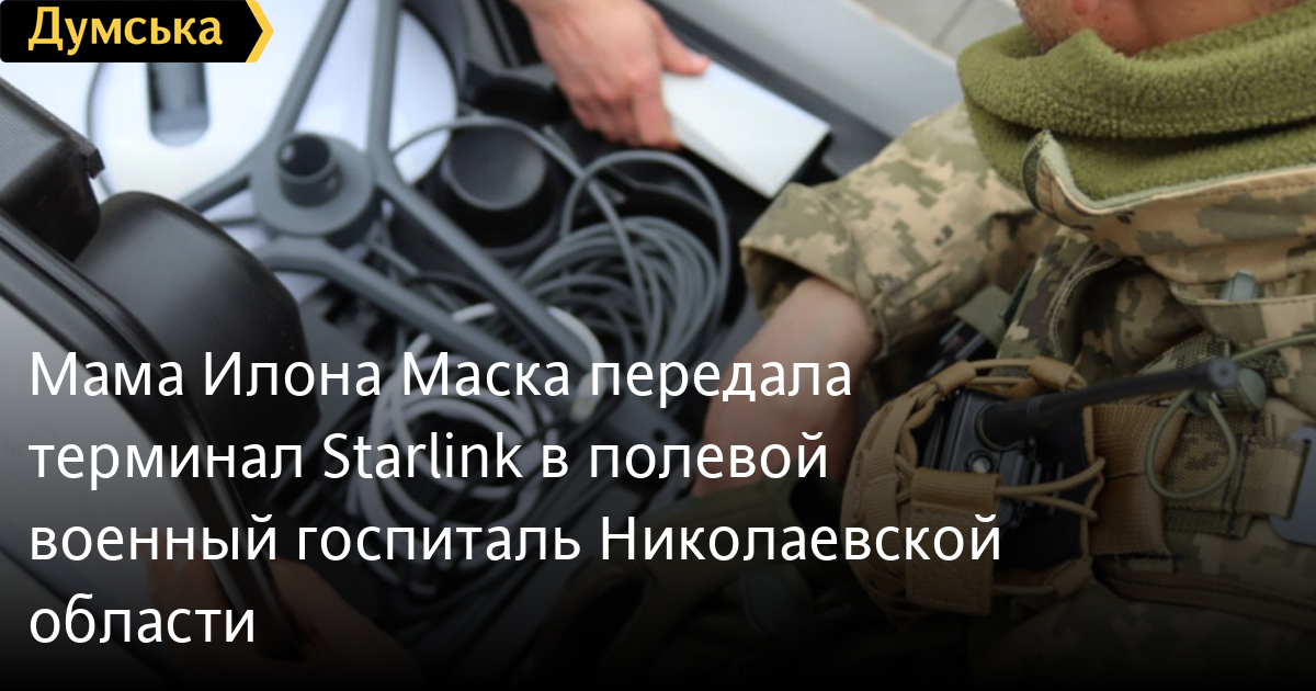 Она отметила, что комплект Starlink лично передала в Николаевскую область мама Илона Маска Мэй, а доставит его на передовую Коля Серга, который вчера побывал в Гуманитарном штабе в Николаевской области, чтобы поднять боевой дух волонтерам.