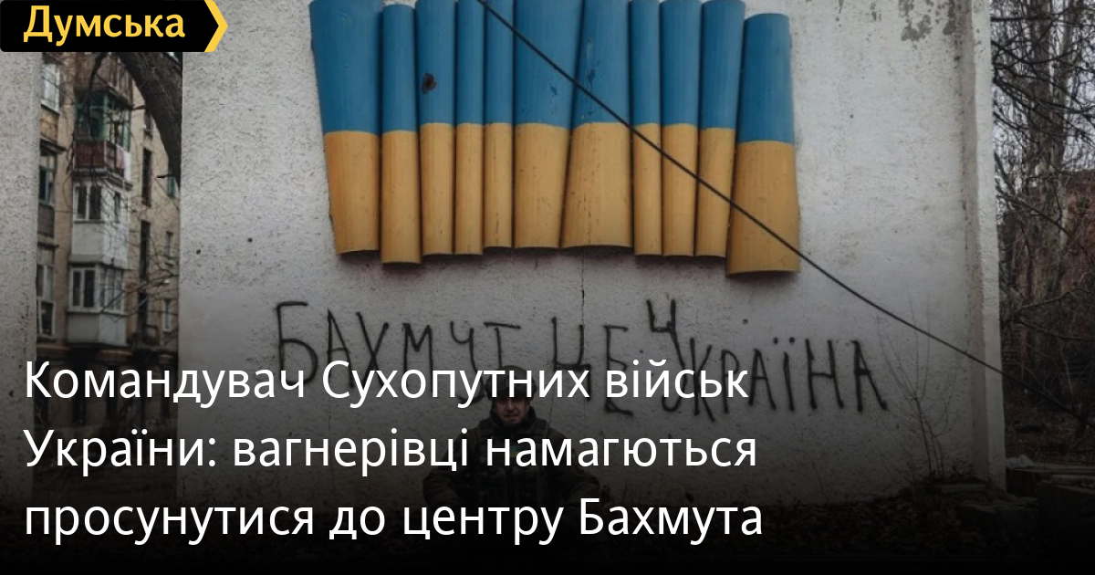 Нагадаємо, раніше командувач Сухопутних військ України заявив, що актуальність оборони Бахмута зростає з кожним днем, тому що у такий спосіб українські війська знищують найбільш підготовлене та боєздатне угруповання ворога — найманців із ПВК «Вагнер» і виграють час на підготовку нових наступальних операцій.