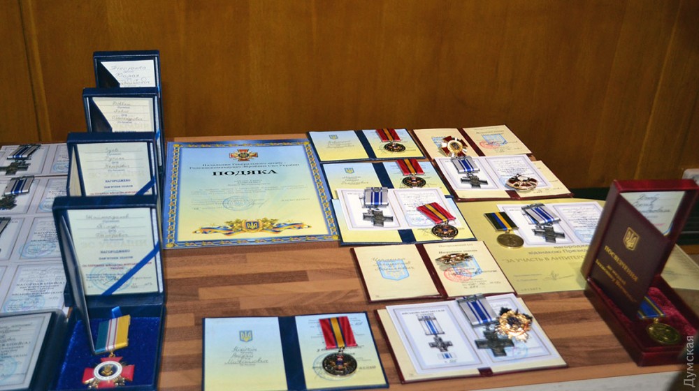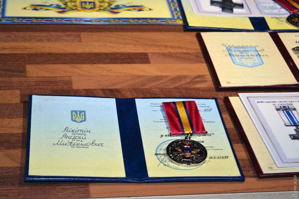 Награды от командующего ВМСУ также получили волонтеры Руслан Зуев и Павел Довбыш. Сегодня в ВМСУ были награждены 487 военнослужащих, 62 награды вручил в Одессе вице-адмирал Воронченко.