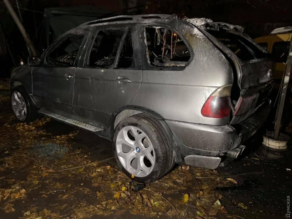 BMW X5 известного общественника Демьяна Ганула, который разбили сегодня утром, сожгли.