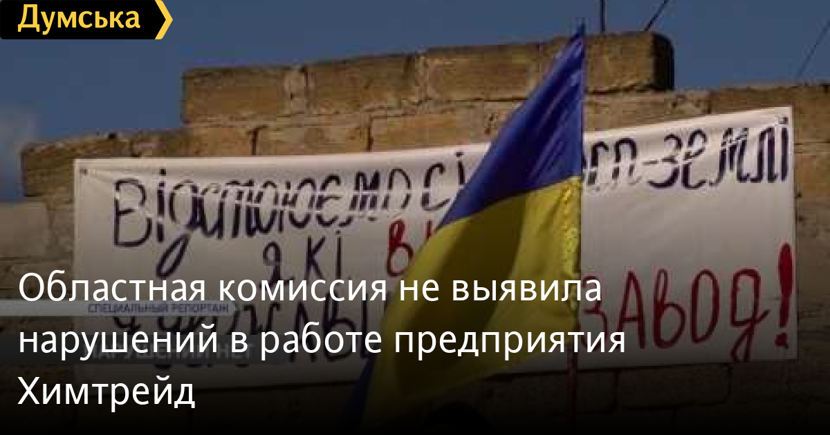 Областная комиссия не обнаружила нарушений в работе предприятия Химтрейд. Такие выводы чиновников стали известны на совещании руководителей департаментов СМЕРТЬ РОССИЙСКИМ ОККУПАНТАМ! Заметили ошибку? Выделяйте слова с ошибкой и нажимайте control-enter Думская ТВ. Сюжеты: