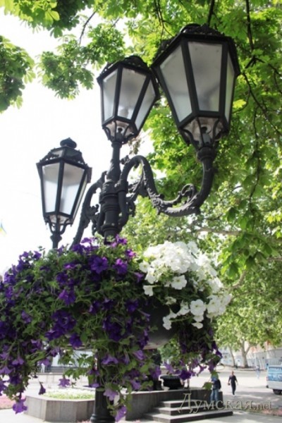 В преддверии лета «Горзелентрест» приступил к вертикальному озеленению города.Как сообщила пресс-служба горсовета, 52 получаши с цветами уже установлены на опоры в Горсаду, на Думской площади, Приморском бульваре и Театральной площади.
