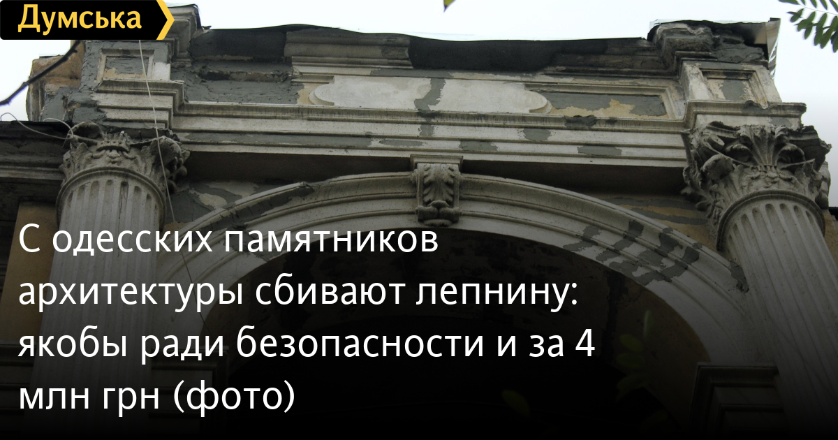 С одесских памятников архитектуры сбивают лепнину: якобы ради безопасности и за 4 млн грнС одесских памятников архитектуры сбивают лепной декор. Об этом распорядился начальник городского управления охраны культурного наследия Павел Остапенко. Всего таким образом должны «зачистить» 22 здания на Пушкинской, Екатерининской, Елисаветинской, Греческой и других улицах города, на что из бюджета выделено целых 4 млн грн. Работы по каждому дому заказывают отдельно, что позволило обойтись без тендера (так называемая допороговая закупка). Деньги получит компания «РЕ-ЛАЙФ», принадлежащая некоему Сергею Яковлеву из Хмельницкого. Видимо, свой человек. Остапенко обещает, что утраченные элементы декора воссоздадут и вернут на прежнее место — когда до этих домов дойдет очередь на реставрацию. Вы ему верите? Тем временем на Елисаветинской сняли леса с доходного дома Бугайцева (№8), который отреставрировала частная компания. На удивление прилично получилось. Фото Олега Коваленко СМЕРТЬ РОСІЙСЬКИМ ОКУПАНТАМ! ![]() А дом №8 по Елисаветинской после реставрации выглядит на удивление прилично. Портит вид только новая мансарда Помітили помилку? Виділяйте слова з помилкою та натискайте control-enter