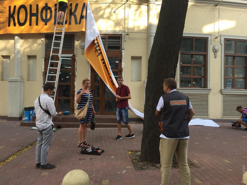 «В КП «Одесса реклама» говорят, что баннер установлен без разрешительных бумаг», — прокомментировал активист.