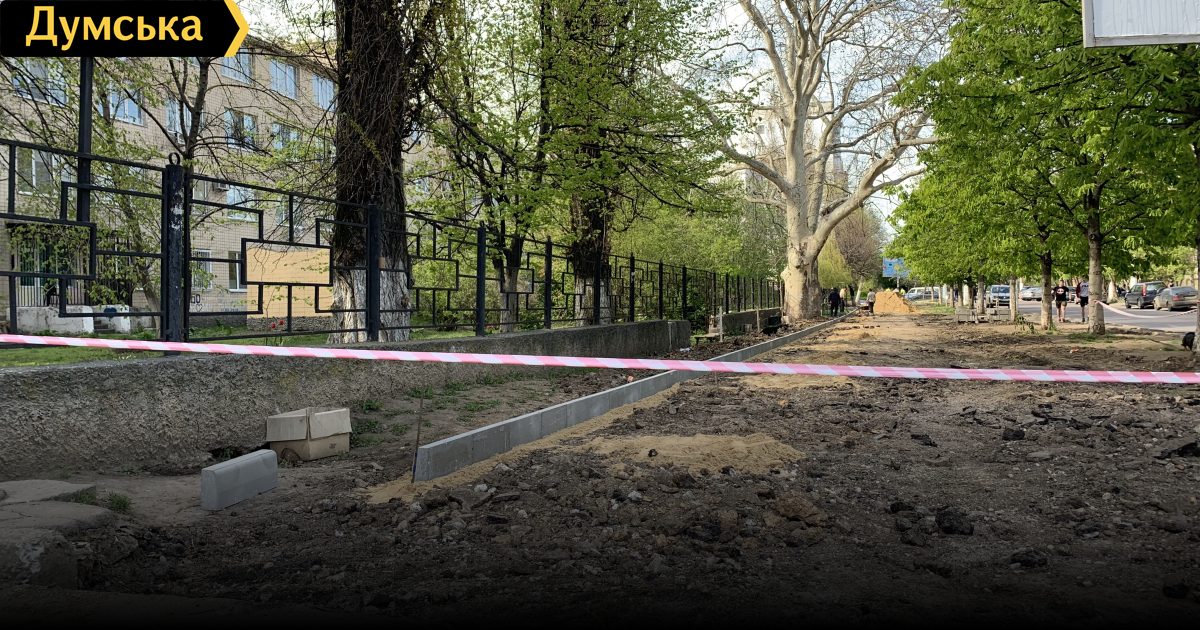 Как передает корреспондент «Думской», дорожники сняли старое покрытие на участке протяженностью около 250 метров от «Укрэксимбанка» до Академической улицы. Обещают постелить вместо асфальта плитку и установить новые бордюры.