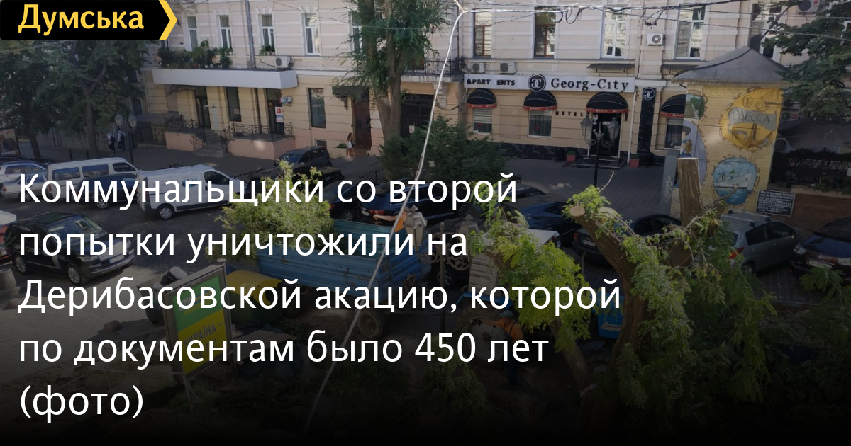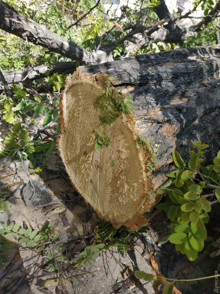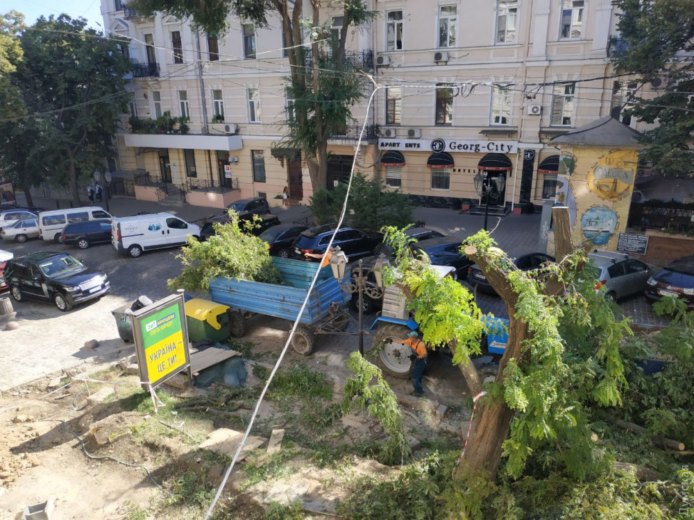 Одесские коммунальщики все-таки спилили акацию, растущую возле доходного дома Стифеля на Дерибасовской, 10.