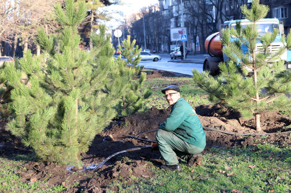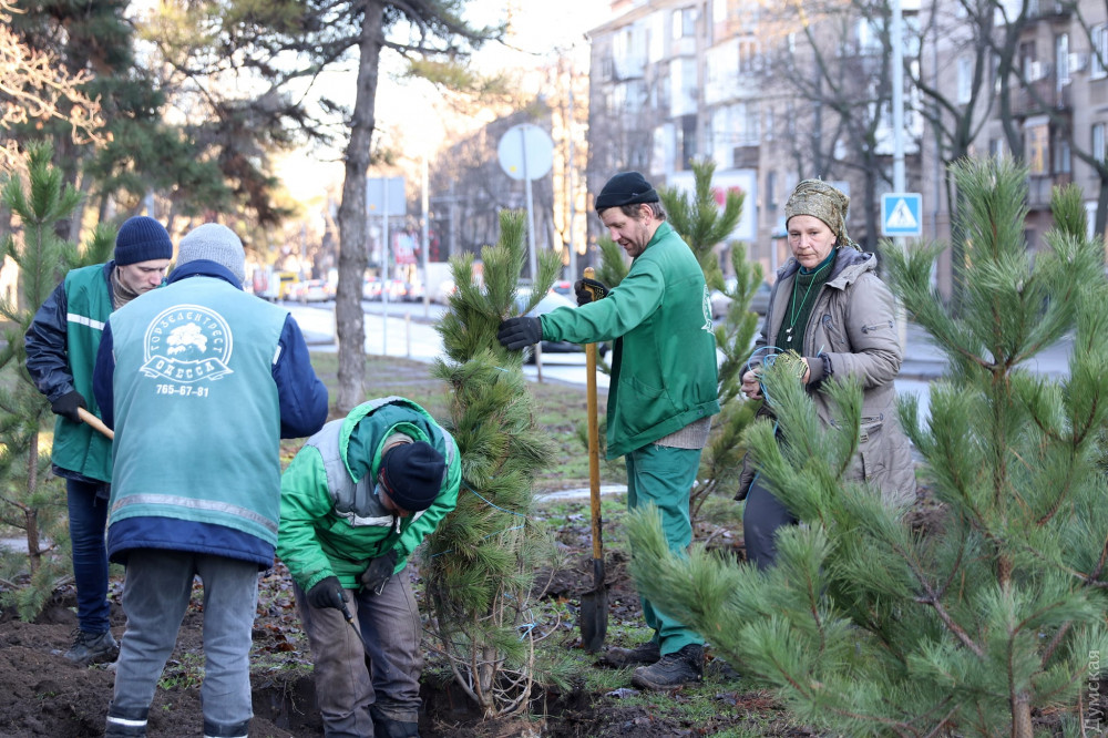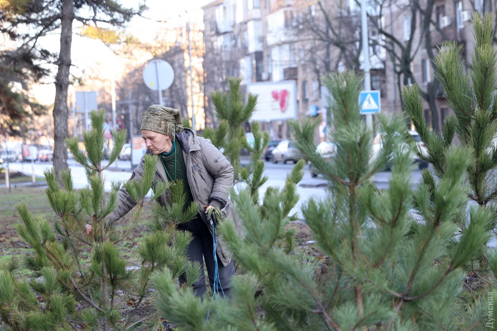 На зеленой территории сквера вокруг Одесской областной госадминистрации на проспекте Гагарина вчера сотрудники КП «Горзелентрест» высадили несколько десятков крымских сосен.