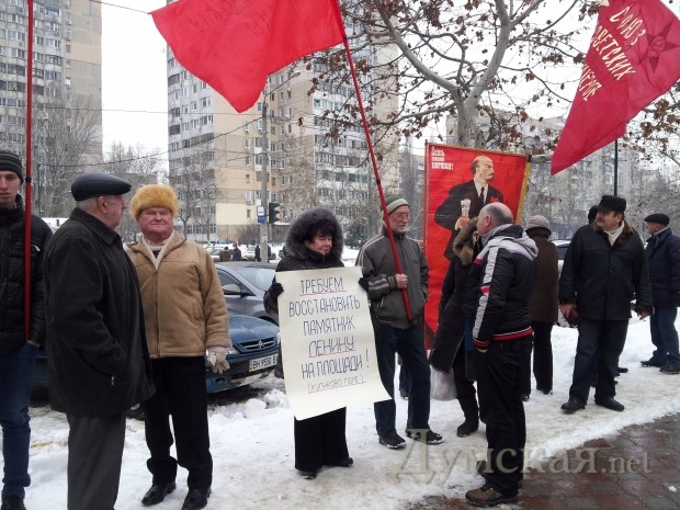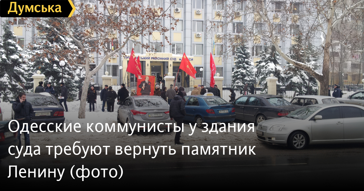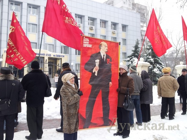 15 сторонников Компартии собрались у здания Приморского районного суда Одессы в день рассмотрения дела о переносе памятника Ленину.