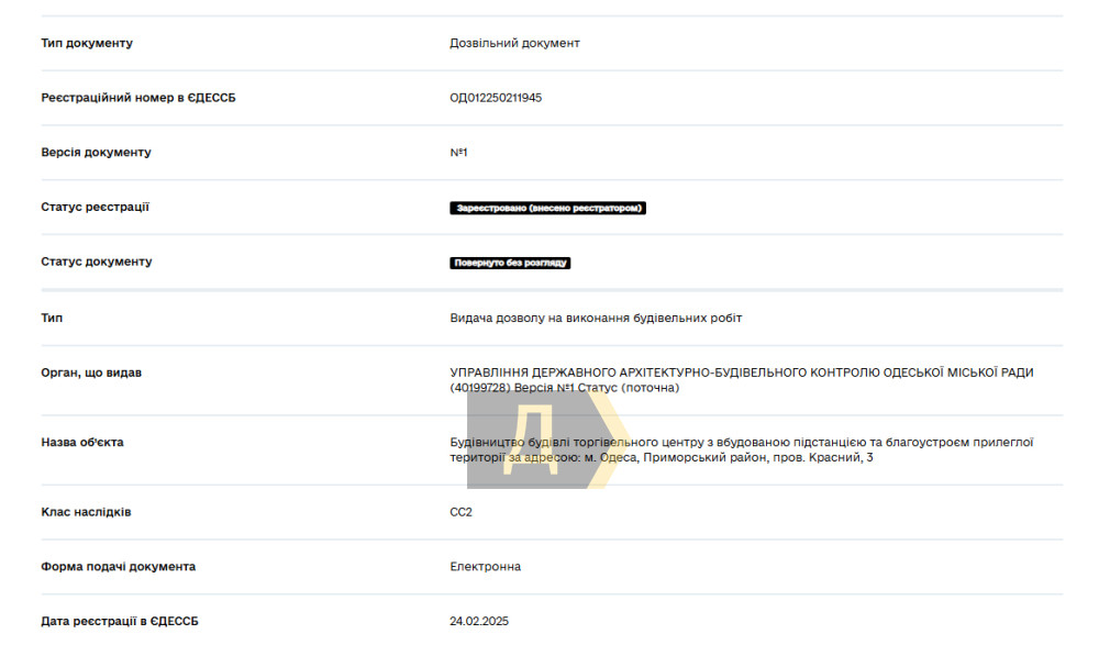 За інформацією «Думської», нещодавно фірма подала в управління державного архітектурно-будівельного контролю Одеської міськради декларацію про початок робіт, але вчора відкликала її для доопрацювання.