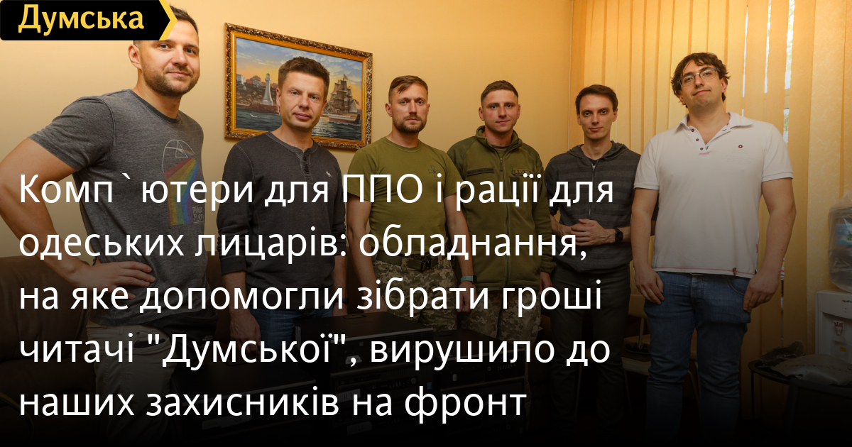 Раніше «Думська» збирала кошти на безліч корисних речей для наших військових. Нагадаємо, ми вже відправили бійцям, які воюють на півдні України, моніторингову систему для вистежування противника, тепловізори, рації та комп'ютери для ППО.