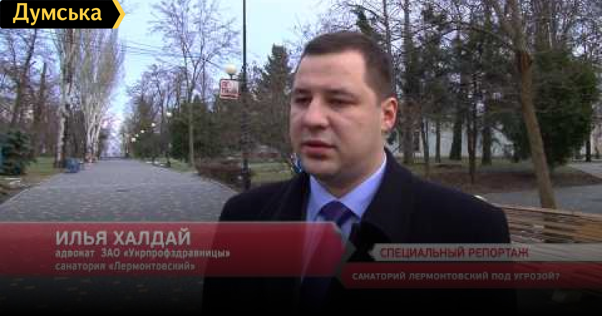 Лермонтовский санаторий под атакой незаконной комиссии Министерства юстиции Украины. У одной из ведущих здравниц Одесской области, появился юридический двойник, зарегистрированный от 29.01.2015 года. Буквально на следующий день, — 30.01.2015 группа людей крепкого телосложения приехала инвентаризировать все движимое и недвижимое имущество здравницы. По факту, комиссия в составе уполномоченных сотрудников Министерства юстиций Украины для инвентаризации зарегистрированного имущественного Государственного предприятия Клинический санаторий Лермонтовский, прибыла в дочернее предприятие ЗАО «УкрПрофздравница» с требованиями предоставить им всю документацию и начать процедуру передачи имущества. СМЕРТЬ РОСІЙСЬКИМ ОКУПАНТАМ! Помітили помилку? Виділяйте слова з помилкою та натискайте control-enter Думская ТВ. Сюжеты: