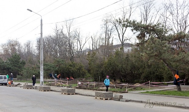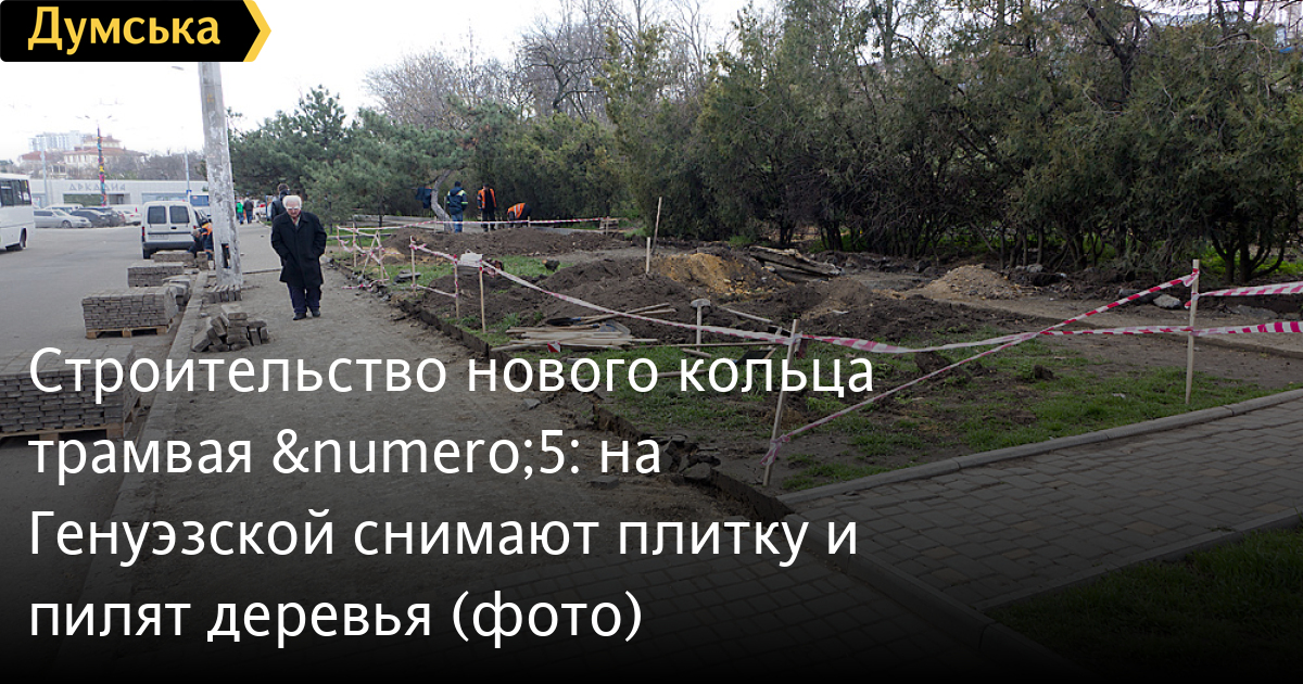 Работы по созданию нового разворотного кольца пятого трамвая на участке Генуэзской между Посмитного и Аркадией, действительно, начались.