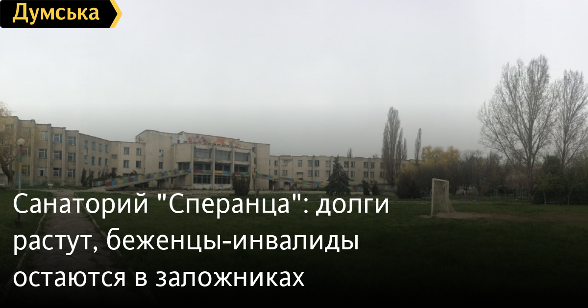 Областная администрация, с согласия которой в прошлом году беженцы были размещены в неприспособленном помещении, признает, что перед санаториями накопились многомиллионные долги за проживание и питание вынужденных переселенцев. Несмотря на отсутствие действующего договора аренды, арендатор «Сперанцы» продолжает подавать в ОГА отчеты по затратам, общая сумма которых достигла 13 млн грн. Что это за затраты и кто их контролирует, сказать сложно.