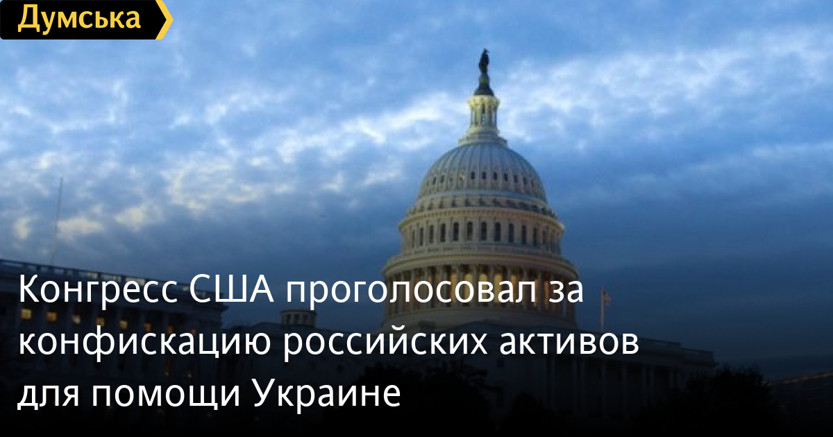 Палата представителей Конгресса США приняла законопроект о конфискации активов российских подсанкционных юридических и физических лиц для помощи Украине.