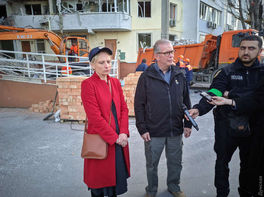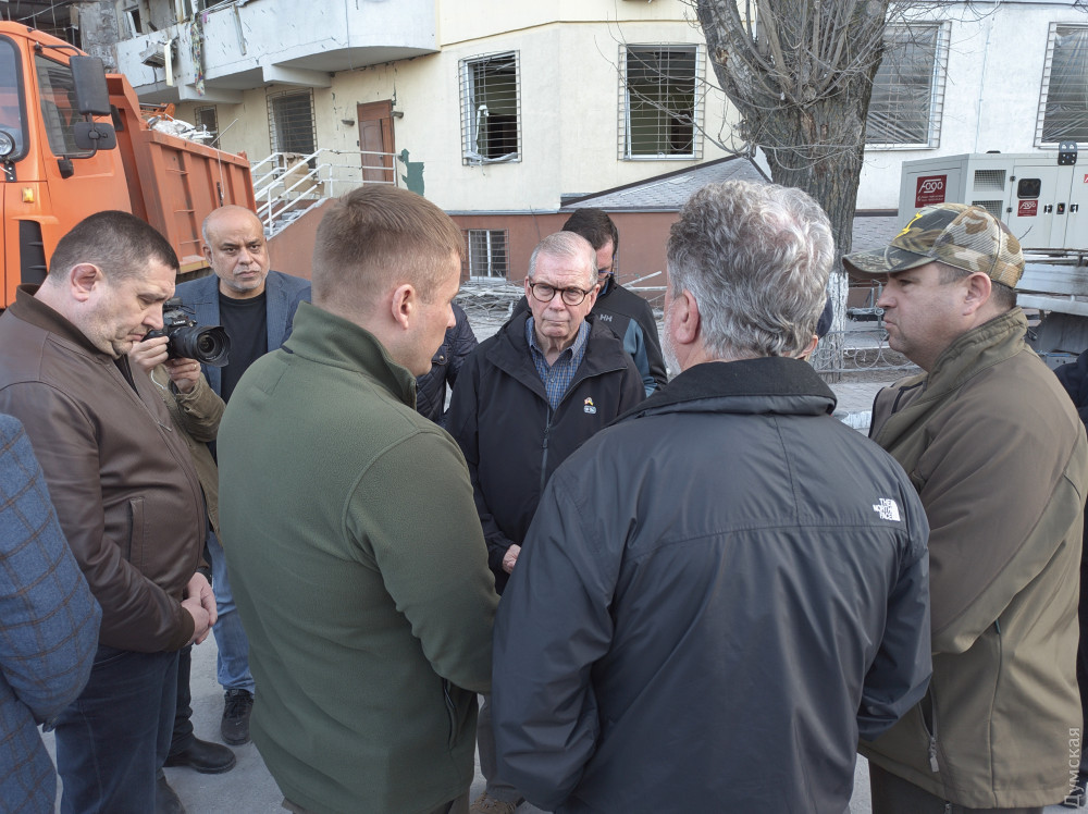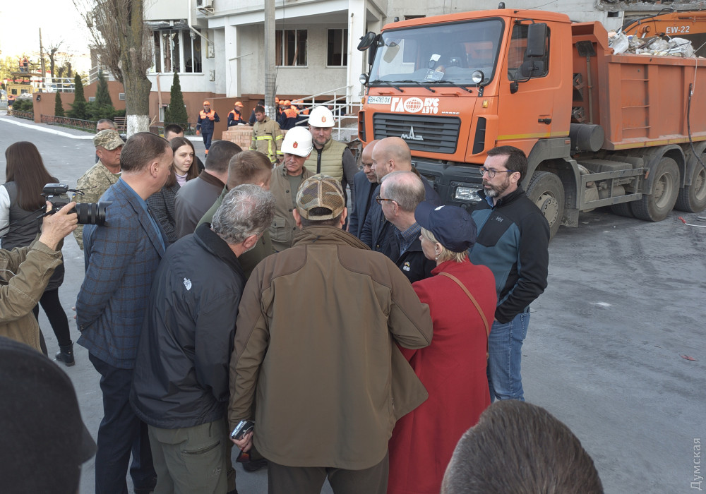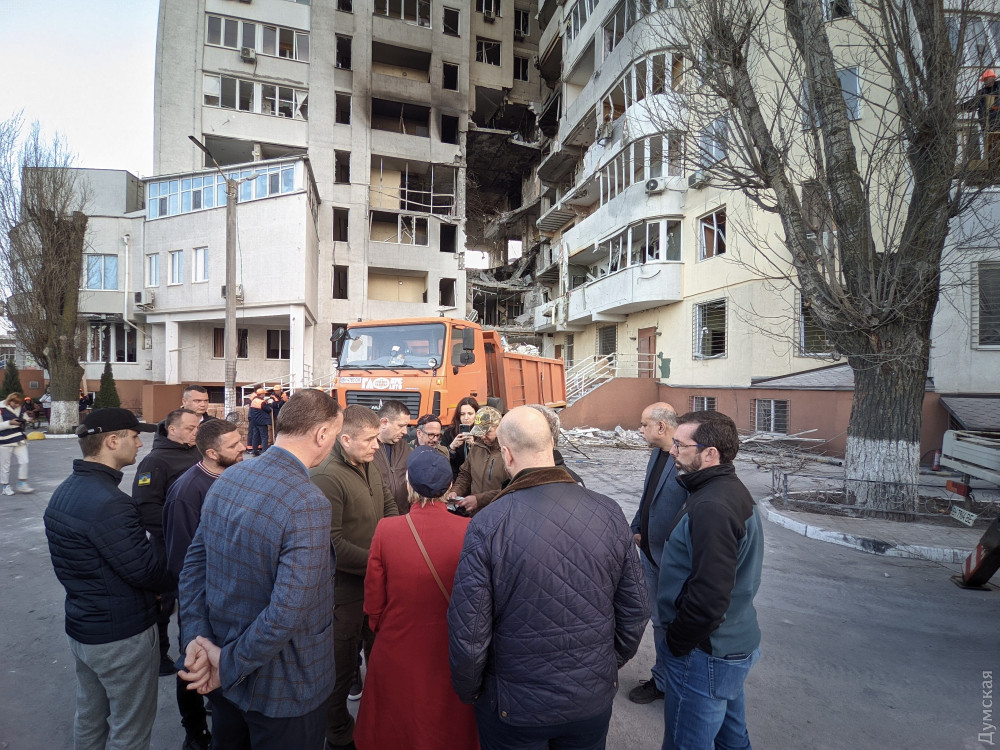 Они своими глазами увидели трагические результаты российской ракетной атаки, встретились с жителями пострадавшего дома, пообщались с главой Одесской военной администрации Максимом Марченко и городским головой Геннадием Трухановым, cотрудниками полиции и коммунальных служб, которые продолжают аварийные работы на месте трагедии.